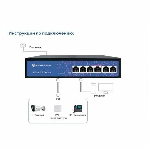 | Дополнительная информация | еуправляемый POE коммутатор 4*10/100Mbps+ 2 Up-link |