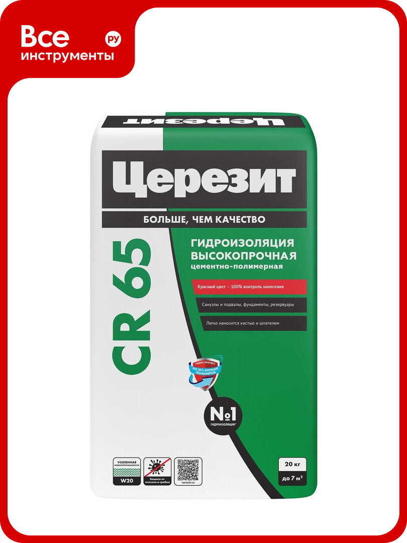 Гидроизоляционная смесь CR 65 предназначена для устройства водонепроницаемых покрытий на недеформирующихся трещиностойких незасоленных минеральных, не содержащих гипс, основаниях, внутри и снаружи зданий.