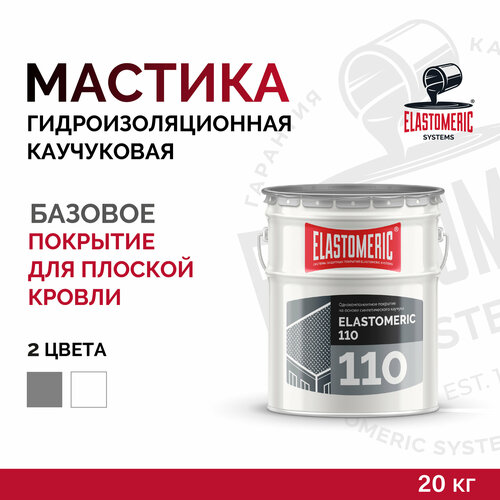 ELASTOMERIC - 110 – наносимое в жидком виде однокомпонентное покрытие на основе блок сополимера синтетического каучука для гидроизоляции и защиты строительных конструкций и устройства долговечных бесшовных кровельных мембран. После высыхания образует упругую, водонепроницаемую, высокоэластичную мембрану, которая обладает очень высокой степенью абразивного износа, устойчивостью к воздействию ультрафиолета, растворов солей, кислот и щелочей. Содержит органический растворитель. После полного высыхания и полимеризации покрытие ELASTOMERIC - 110 экологически безопасно, так как не имеет в составе вулканизаторов, изоционатов и отвердителей.