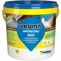 Готовая гидроизоляционная мастика Vetonit weber. tec 822 ведро, 1.2 кг, серая 1021458 - высокоэластичная бесшовная полимерная гидроизоляция под плитку для помещений с повышенной влажностью: ванных комнат, душевых, санузлов, кухонь, балконов и лоджий.