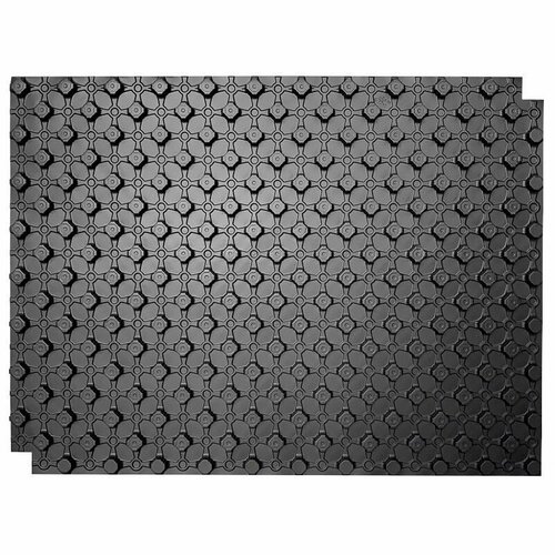 Формованные маты из пенополистирола с жесткой PS-пленкой для монтажа водяного теплого пола. Выступающие элементы (т. н. «бобышки») плотно фиксируют отопительные трубы с первого раза. Благодаря им, применения сетки, хомутов или скоб не требуется. Жесткая полистирольная пленка обеспечивает дополнительную прочность плит, защищает от влаги и продлевает срок службы всей системы.