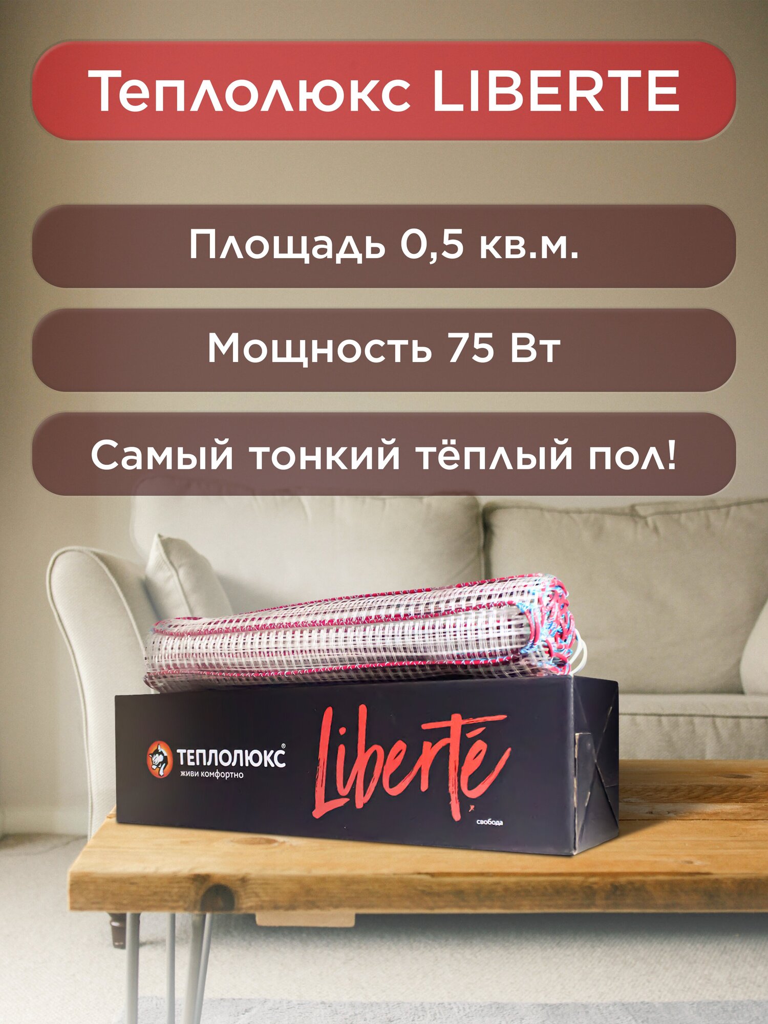 Электрический теплый пол Теплолюкс Liberte 75 Вт./ 0,5 кв. м. Нагревательный мат под плитку. Не боится перегрева.: сравнение цен, характеристики, фото, актуальное наличие и цены.