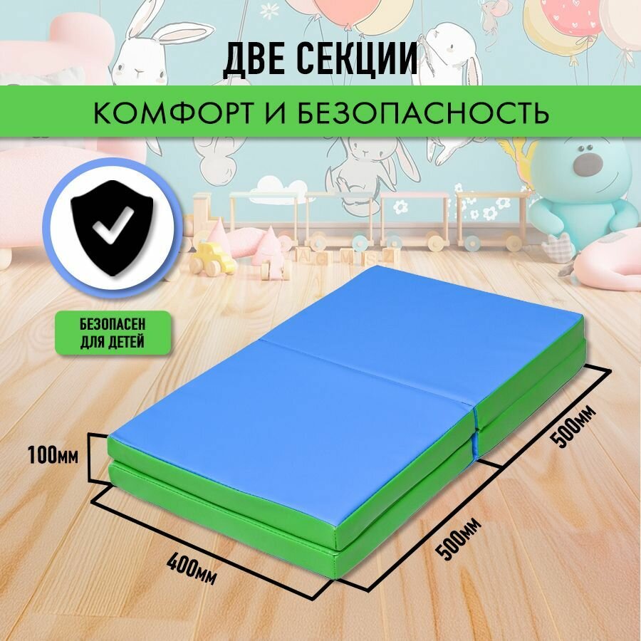Мат спортивный гимнастический 100 х 80 х 5 складной (4 секции) голубой салатовый: сравнение цен, характеристики, фото, актуальное наличие и цены.