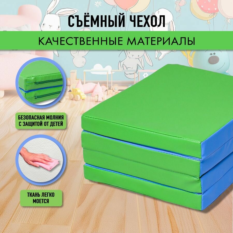 Купить Мат спортивный гимнастический 100 х 80 х 5 складной (4 секции) голубой салатовый с доставкой по всей России.