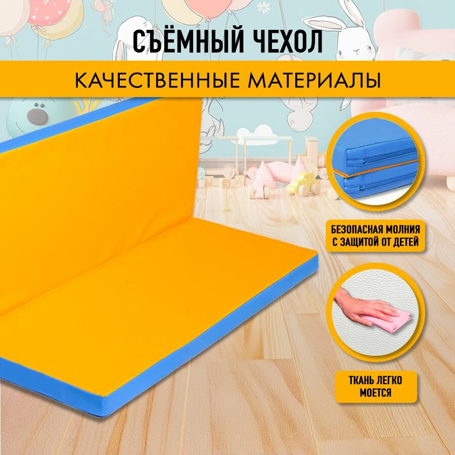Купить Мат спортивный гимнастический 80 х 100 х 5 складной (2 секции) голубой желтый с доставкой по всей России.