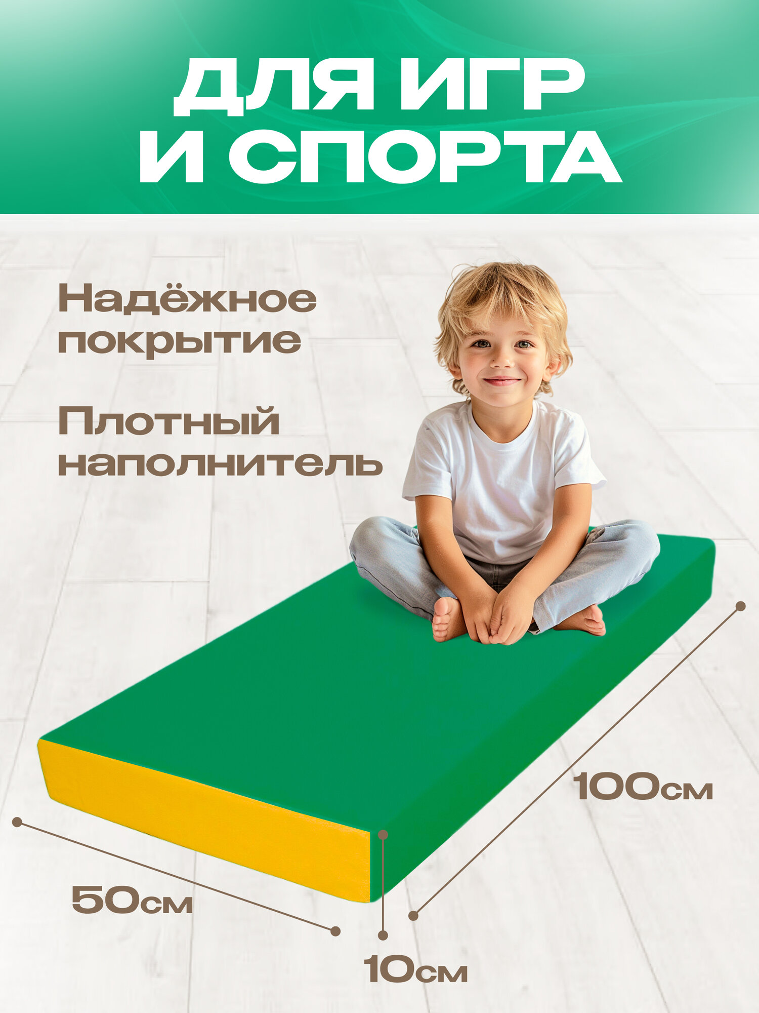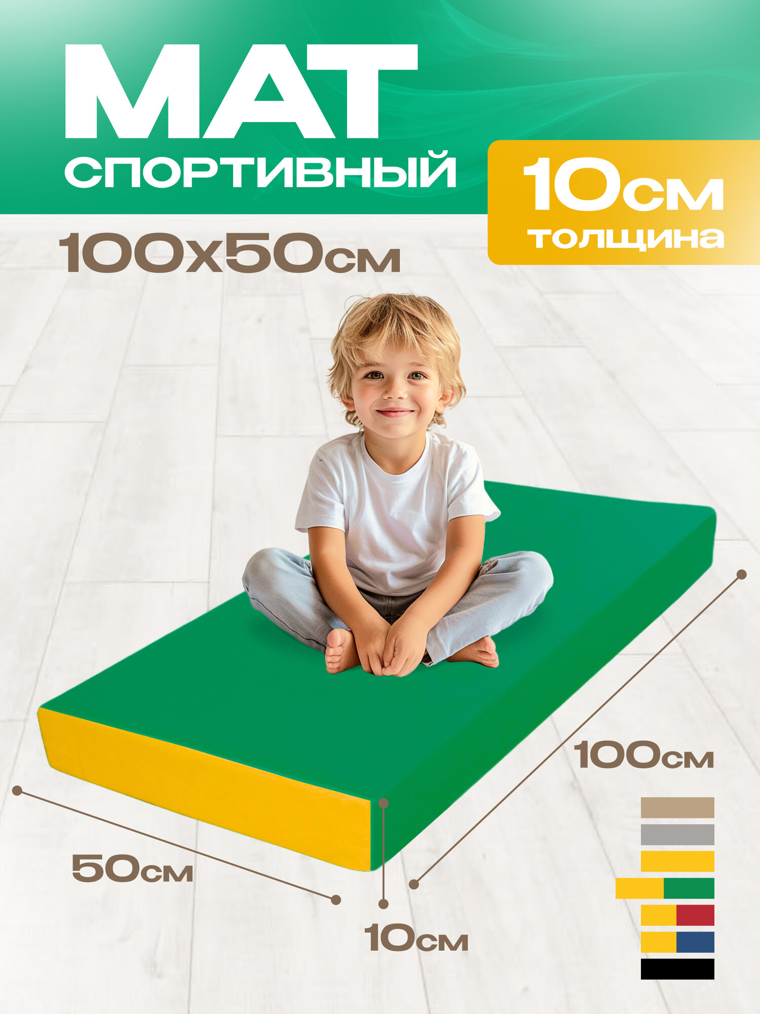 Мат спортивный KMSsport №1, 100 х 50 х 10, 1 секция зелёный жёлтый: сравнение цен, характеристики, фото, актуальное наличие и цены.