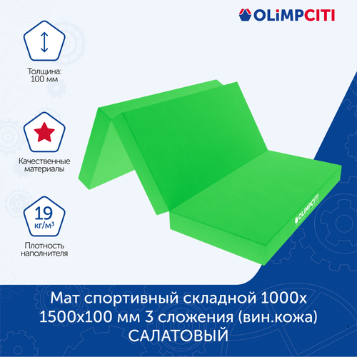 Мат спортивный складной 1000х1500х100 мм 3 сложения (вин. кожа) САЛАТОВЫЙ