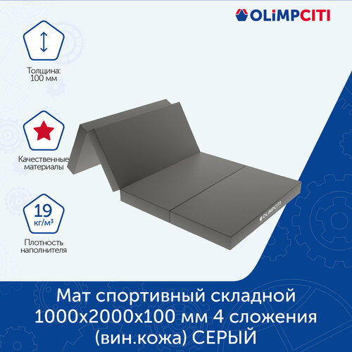 Мат спортивный складной 1000х2000х100 мм 4 сложения (вин. кожа) серый