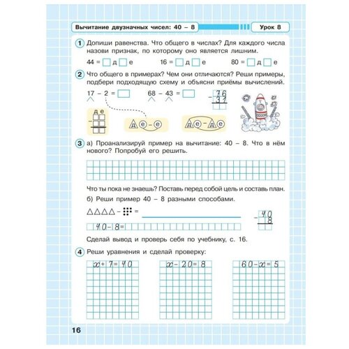 Рабочая тетрадь является дополнительным учебным пособием к курсу математики "Учусь учиться" для 2 класса Л. Г. Петерсон (в любом из двух вариантов книги - в твердом переплете и в форме печатной основы). В рабочей тетради предложены задания, помогающие учителю организовать учебную деятельность учащихся на уроках открытия нового знания и рефлексии в дидактической системе Л. Г. Петерсон. Имеется значительное число дополнительных, тренировочных заданий по всем темам курса, а также заданий творческого уровня. Вариант организации учебной деятельности учащихся с использованием заданий рабочей тетради на уроках разных типов предложен в сценариях уроков к курсу математики "Учусь учиться" для 2 класса, разработанных НОУ ДПО "Институт системно-деятельностной педагогики".