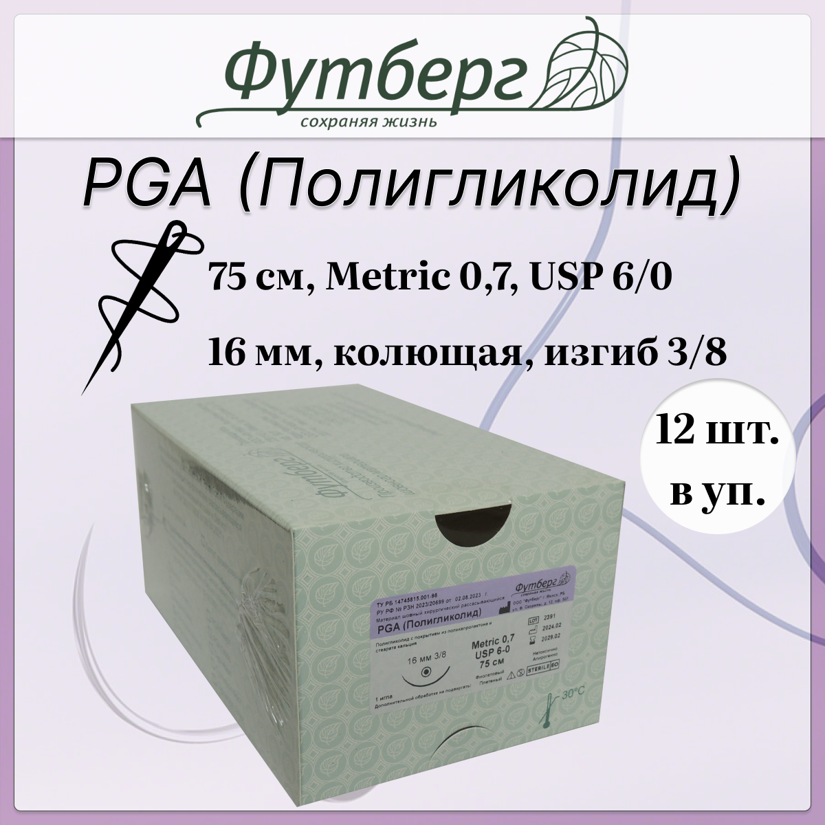 Шовный материал хирургический (Футберг) ПГА PGA (Полигликолид), фиолетовый, Metric 0,7 USP 6-0, 75 см 1 игла колющая, 16 мм, изгиб 3/8 (РУ 2023), 12 шт.: сравнение цен, характеристики, фото, актуальное наличие и цены.