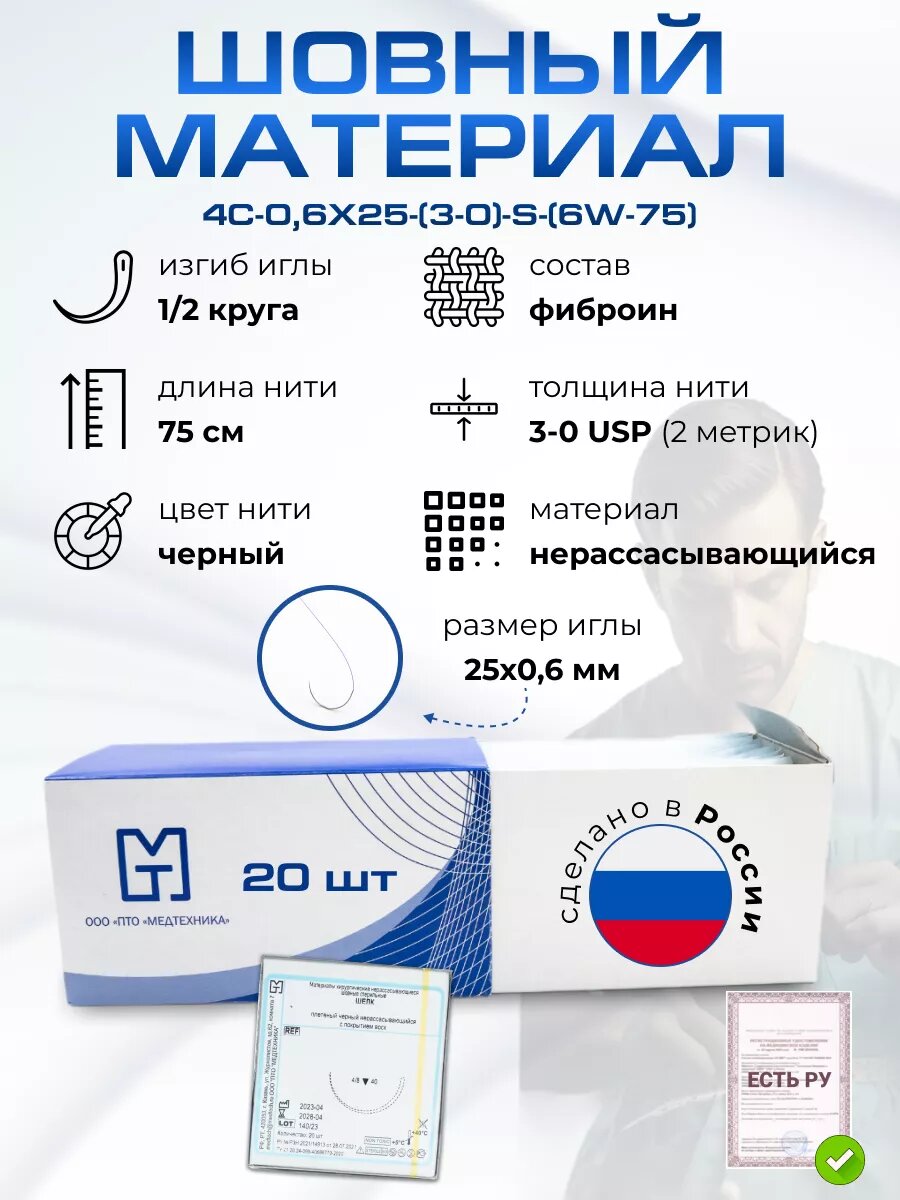 Материалы хирургические нерассасывающиеся шовные стерильные, шелк MР 2 (USP 3-0), 75см плетеный черный нерассасывающийся с покрытием воск, 20 шт/уп: сравнение цен, характеристики, фото, актуальное наличие и цены.