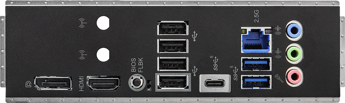 2 x USB 3.2 Gen1 Type-A, 4 x USB 2.0 Type-A, DisplayPort, HDMI, LAN RJ-45, SMA (для антенны Wi-Fi), USB 3.2 Gen1 Type-C