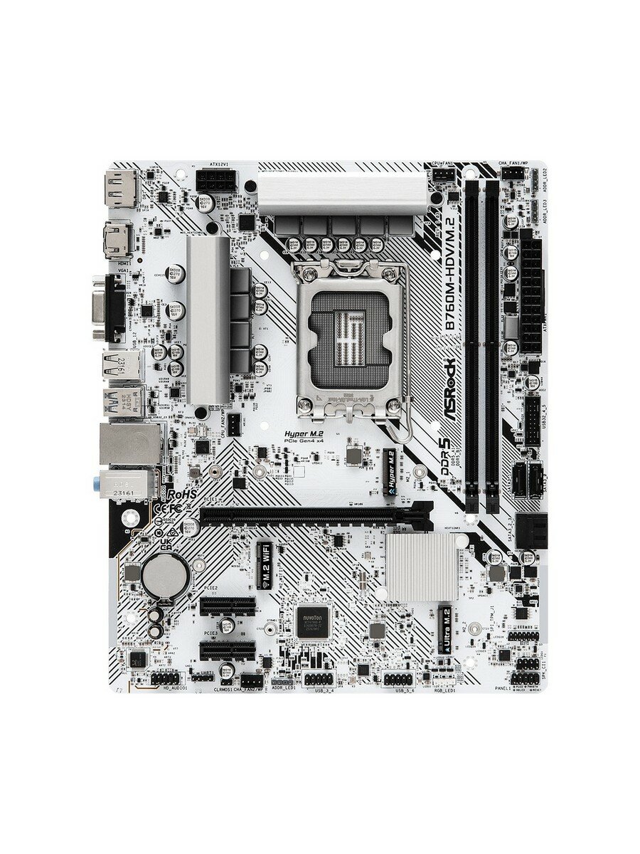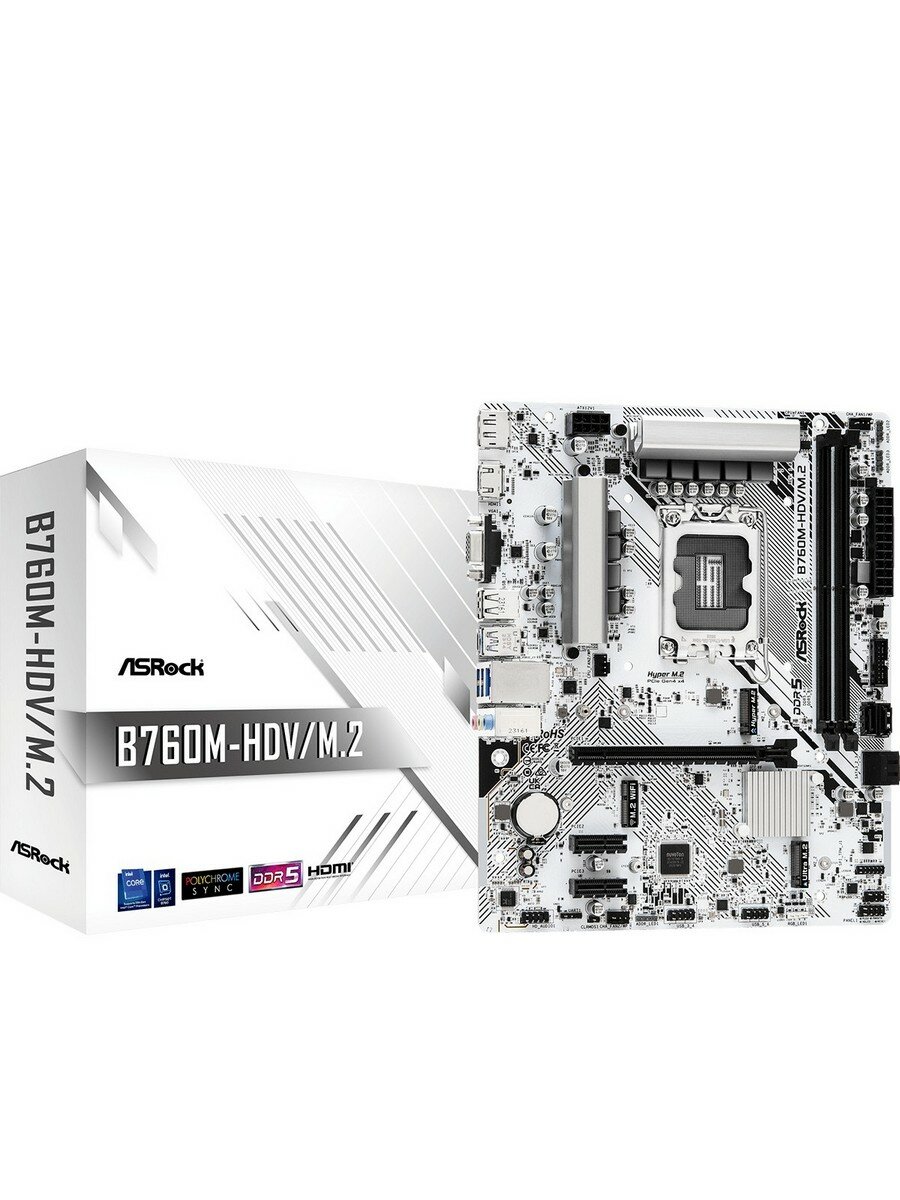 Купить Материнская плата ASRock B760M-HDV/M.2 (LGA1700/B760/2xDDR5/mATX/HDMI, DP, VGA) (B760M-HDV/M.2) с доставкой по всей России.