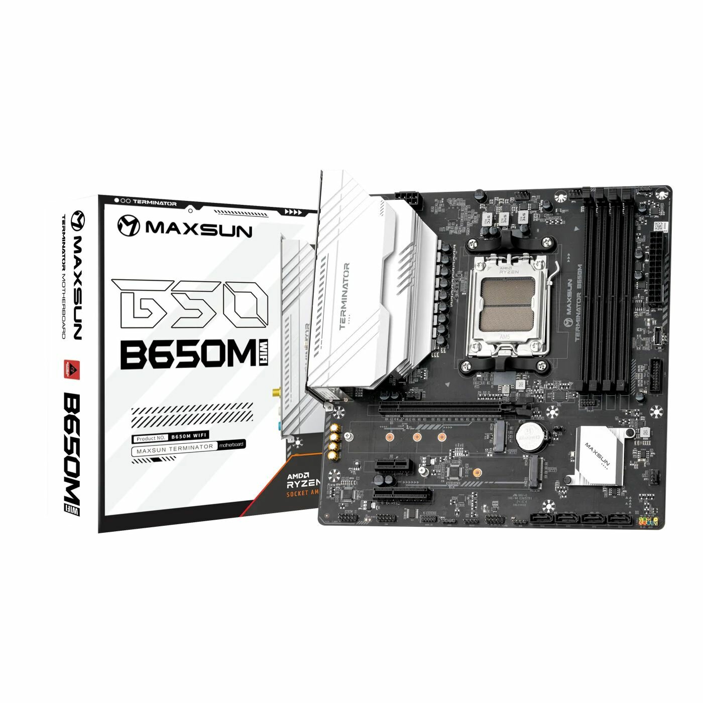Купить Материнская плата Maxsun MS-Terminator B650M WIFI6 AM5, AMD B650, Wi-Fi с доставкой по всей России. Материнская плата Maxsun MS-Terminator B650M WIFI6 AM5, AMD B650, Wi-Fi: сравнение цен, характеристики, фото, актуальное наличие и цены.