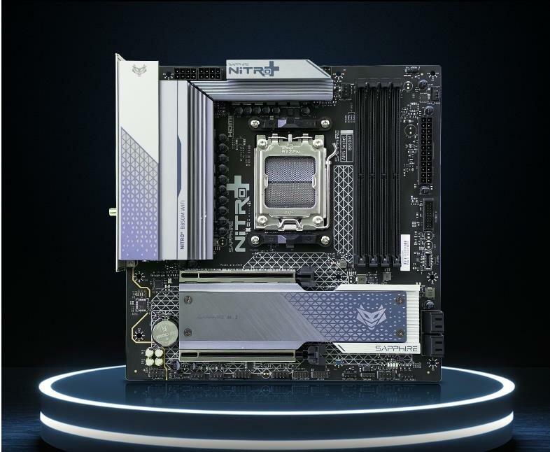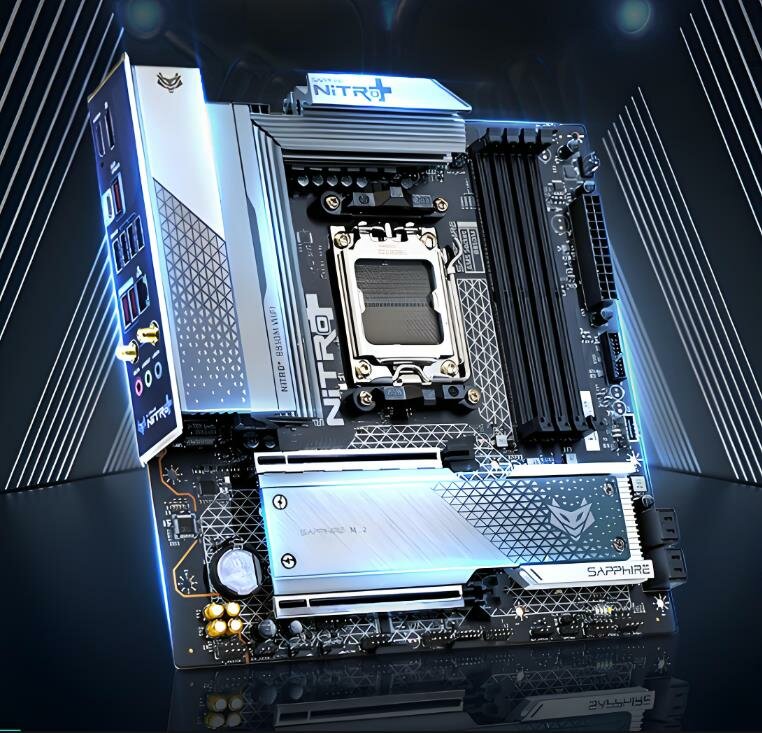 Материнская плата Sapphire B850M Nitro+ wifi, mATX,12+2+1(80A)цепи питания,4*DDR5(до 48G/8000МТ/с),2*SSD, PCIe5.0 GPU: сравнение цен, характеристики, фото, актуальное наличие и цены.