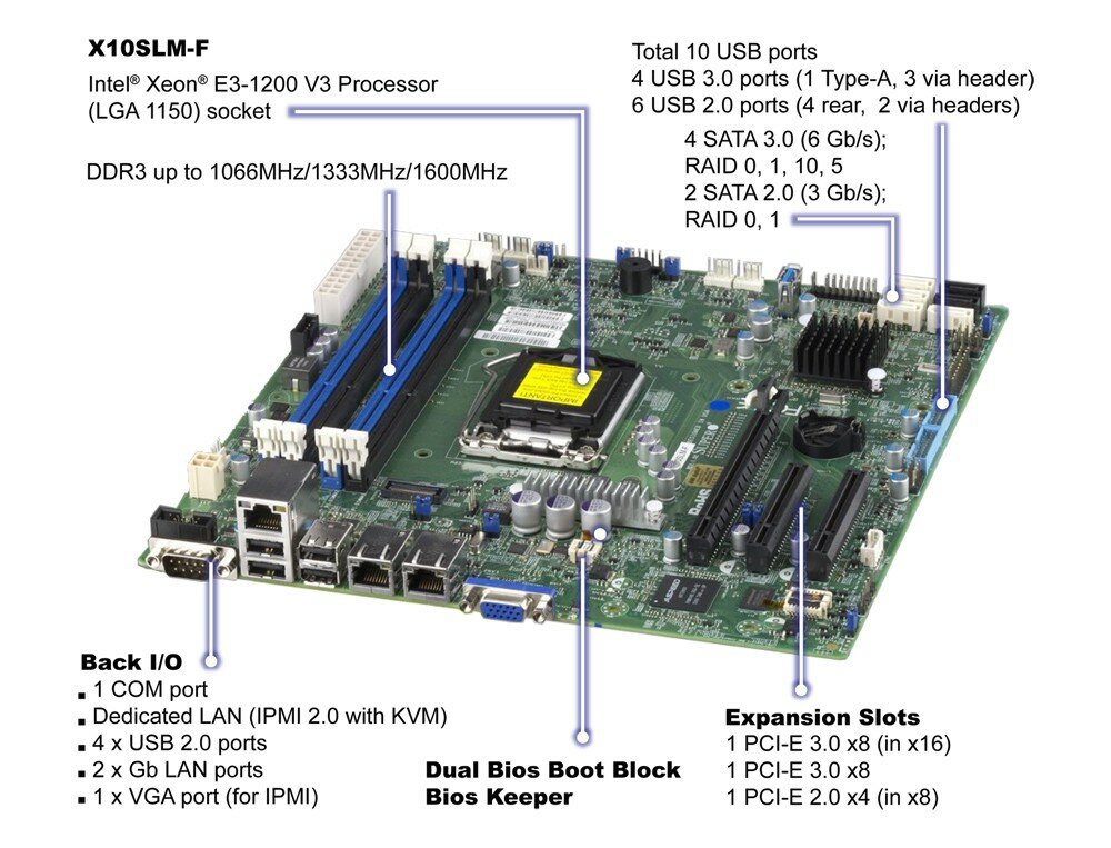 Материнская плата Supermicro X10SLM-F Socket-1150 Intel C224 DDR3 uATX (OEM): сравнение цен, характеристики, фото, актуальное наличие и цены.