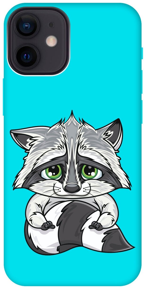 Купить Силиконовый чехол на Apple iPhone 12 Mini / Эпл Айфон 12 мини с рисунком «Sad Raccoon» Soft Touch бирюзовый с доставкой по всей России.