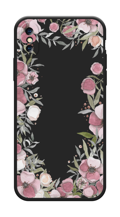 Черный матовый чехол на Apple iPhone XS Max / Айфон XS Max с принтом Розовая цветочная рамка: сравнение цен, характеристики, фото, актуальное наличие и цены.