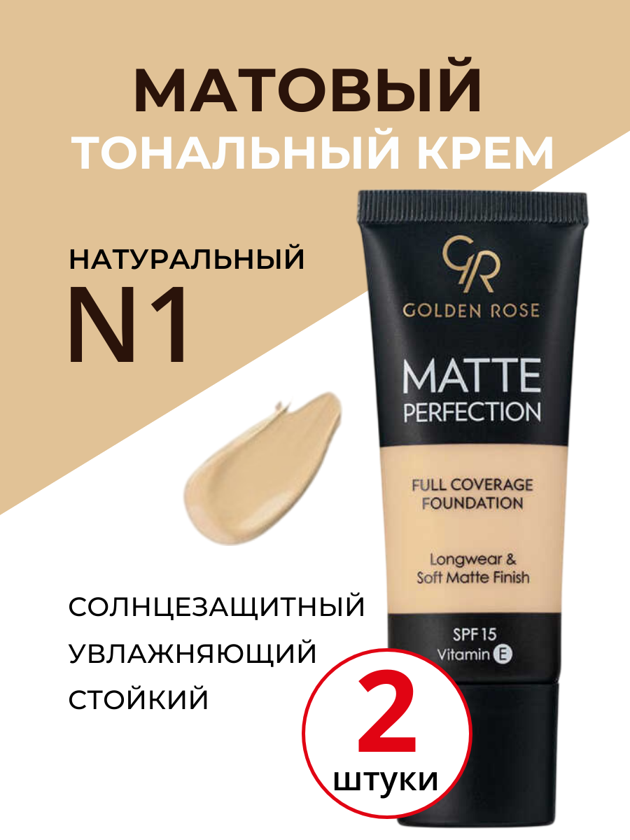 Купить Матовый тональный крем увлажняющий солнцезащитный Golden Rose Matte Perfection Full Coverage Foundation тон 01 Нейтральный стойкий без липкости, набор кремов 2 штуки с доставкой по всей России.