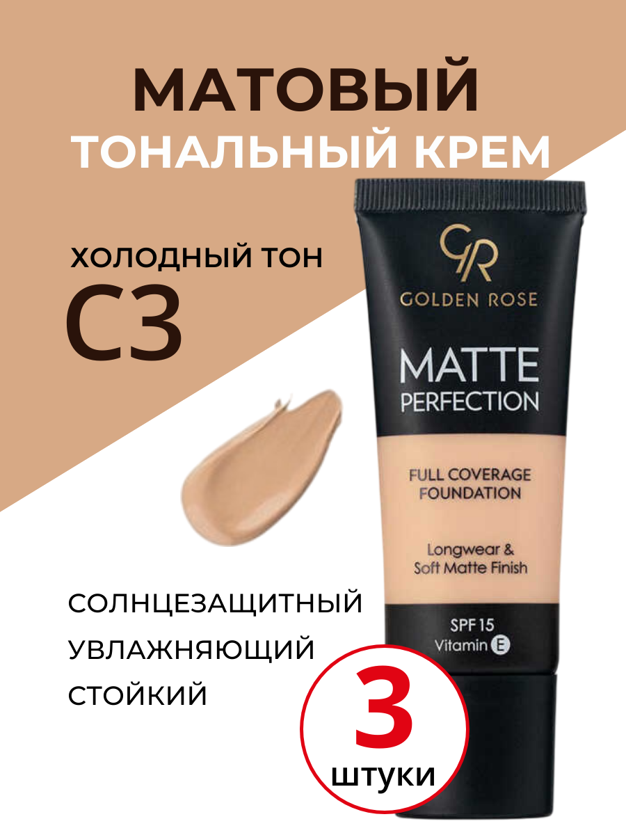 Купить Матовый тональный крем увлажняющий солнцезащитный Golden Rose Matte Perfection Full Coverage Foundation тон 03 Холодный стойкий без липкости, набор кремов 3 штуки с доставкой по всей России.