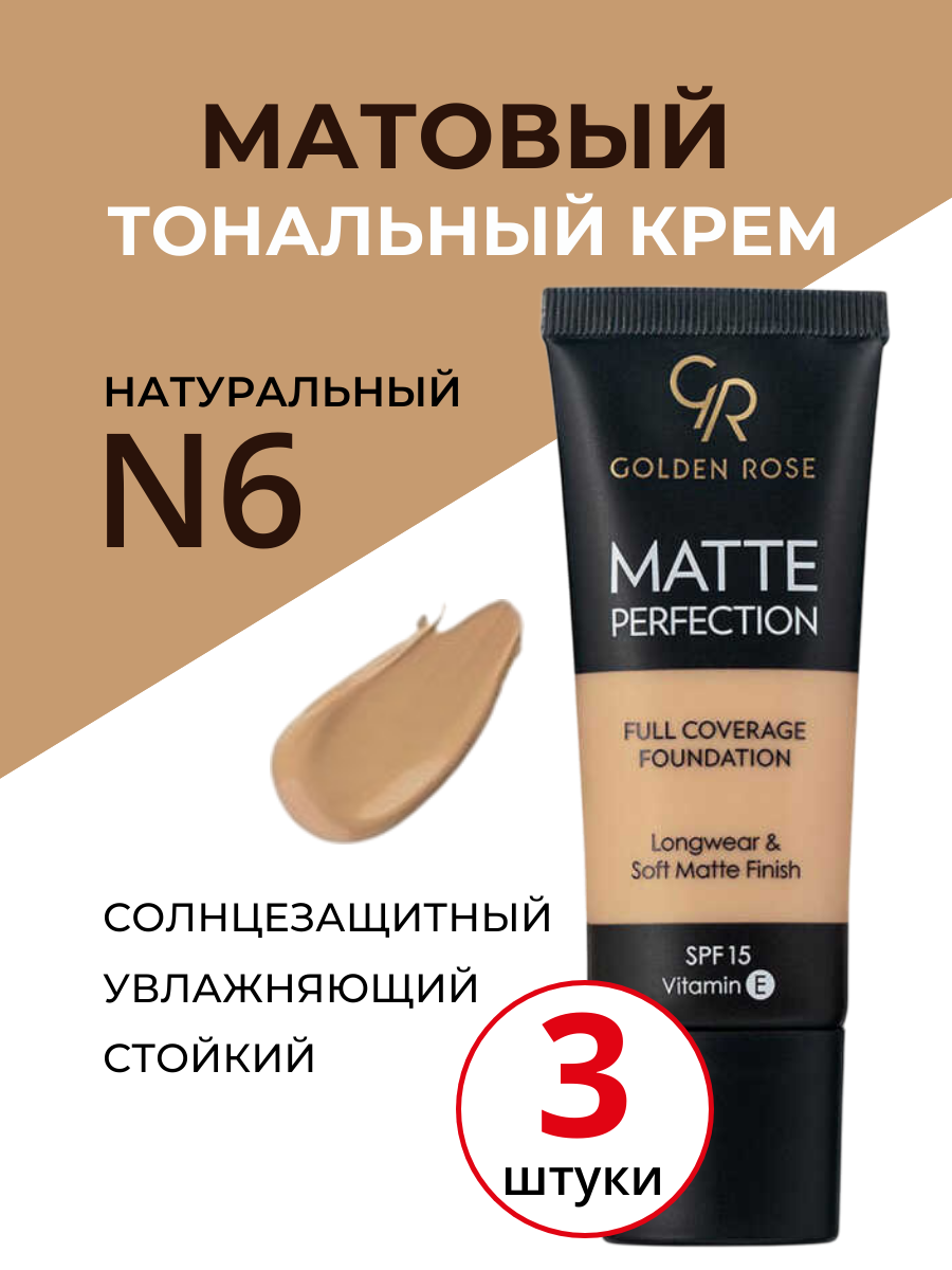Купить Матовый тональный крем увлажняющий солнцезащитный Golden Rose Matte Perfection Full Coverage Foundation тон 06 Нейтральный стойкий без липкости, набор кремов 3 штуки с доставкой по всей России.
