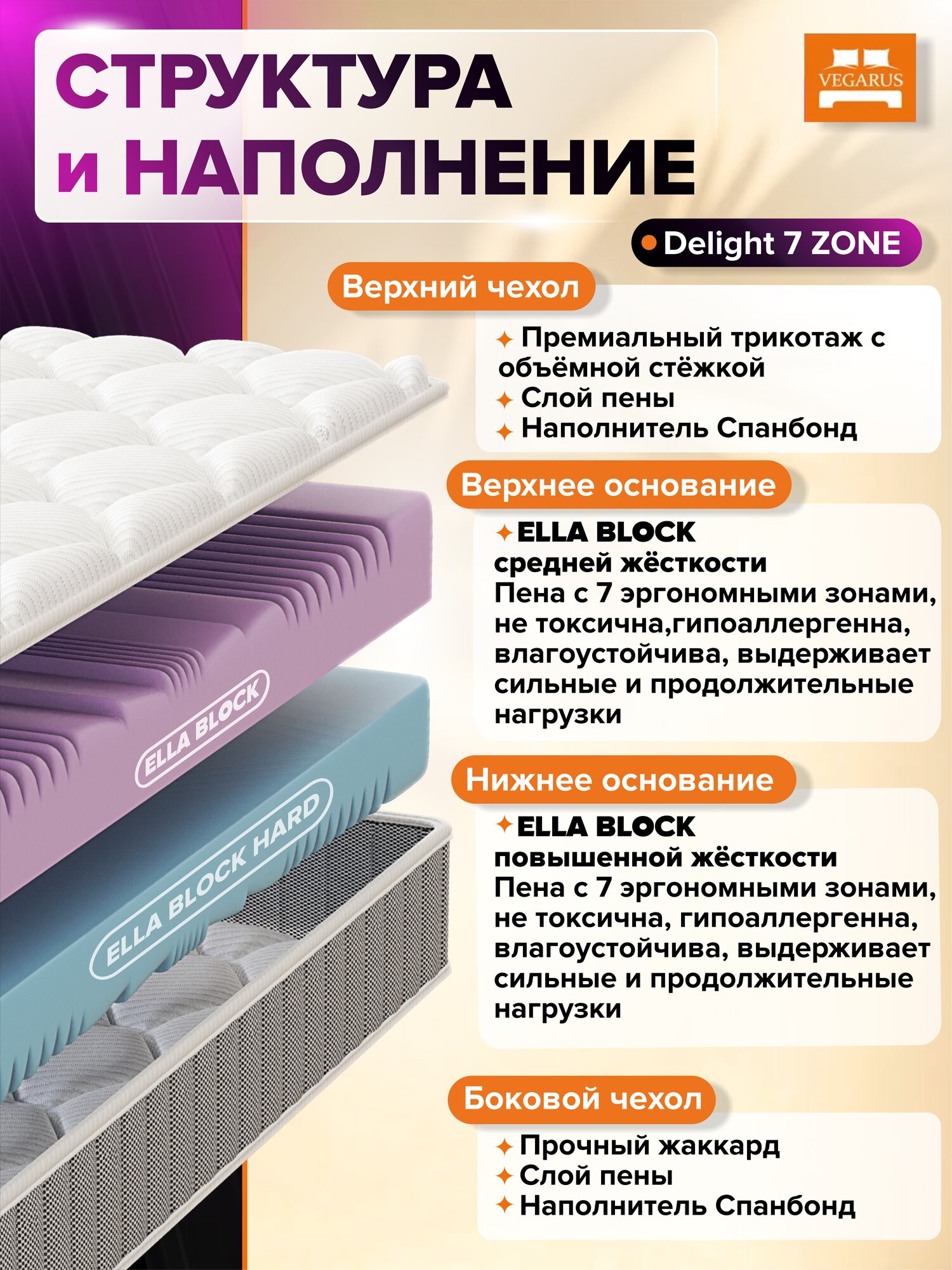Купить Матрас 160×200 на кровать, беспружинный, ортопедический, Delight 7 Zone с доставкой по всей России. Матрас 160×200 на кровать, беспружинный, ортопедический, Delight 7 Zone: сравнение цен, характеристики, фото, актуальное наличие и цены.