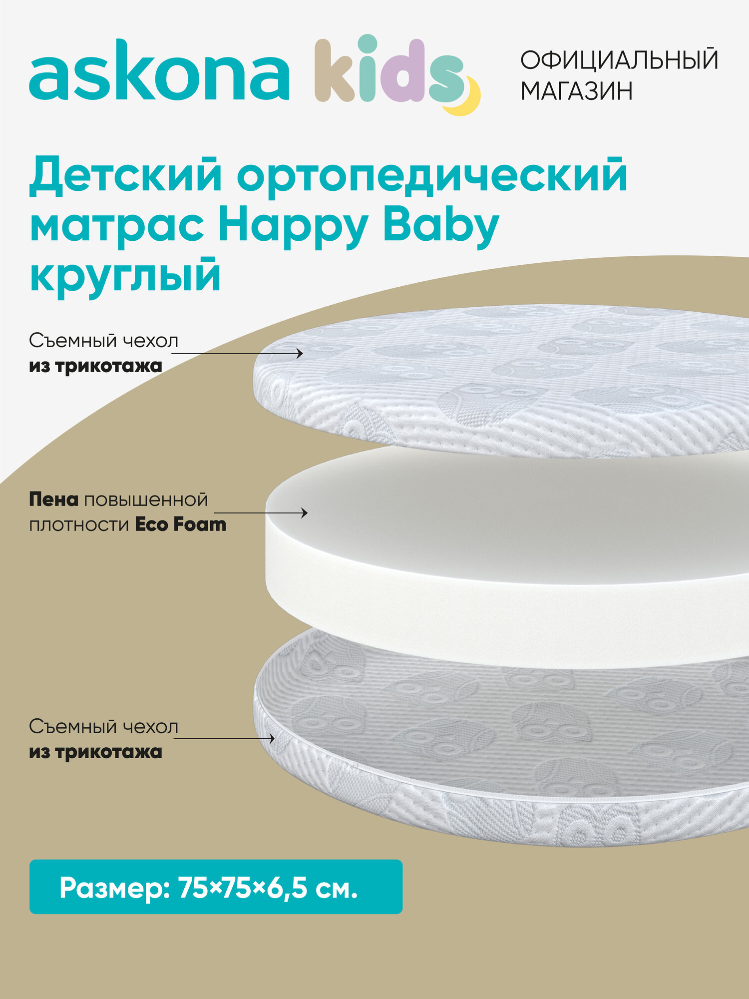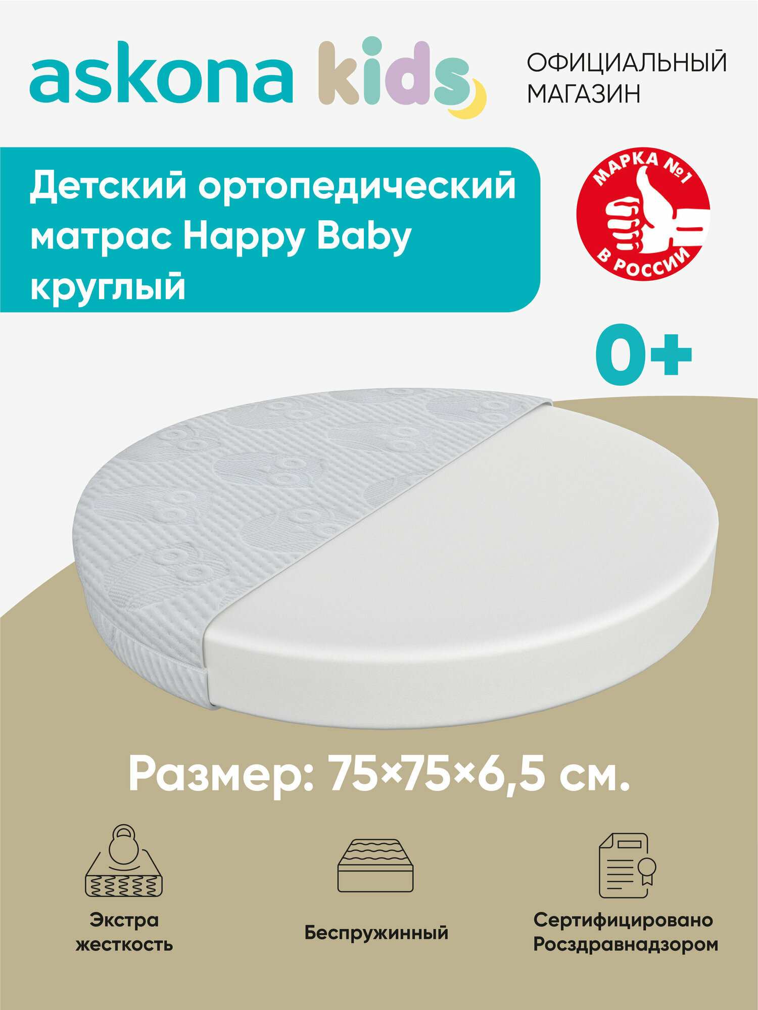 Матрас детский ортопедический Askona KIDS (Аскона) Happy Baby круглый D075: сравнение цен, характеристики, фото, актуальное наличие и цены.