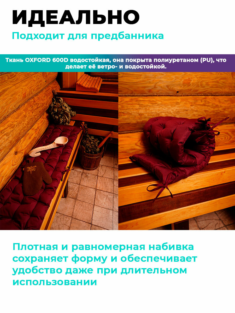 Матрас-Подушка 40x120 см Oxford 600D для Сада и Квартиры (Синтепух, Завязки) Подарите уют подоконнику и комфорт саду! Универсальная подушка-матрас 40x120 см (Oxford 600D, синтепух) с надежными завязками. Ищете подушку для подоконника в квартире для создания уютного уголка? Нужен водостойкий матрас на садовую скамейку или чехол для качелей 40х120? Наша подушка-матрас – идеальное решение! Идеально для Вашего комфорта: - В квартире: Создайте мягкий подоконник для чтения, чаепитий или любования видом! Идеально для оконных зон отдыха, утепления холодных поверхностей. - на даче/В саду: Подушка для кресла кентукки, матрас на садовую скамейку, чехол для качелей 40х120, на шезлонг или лежак. Водостойкая подушка для дачи – не боится дождя! - на балконе/террасе: Комфортное сиденье для отдыха на свежем воздухе. - В походах/на пикниках: Мягкая подстилка для отдыха на природе. Ключевые преимущества: - водостойкий Oxford 600D: Настоящая водостойкая подушка для дачи! Не промокает под дождем, легко очищается влажной тканью. Практично и гигиенично. - 6 надежных завязок: Крепко фиксируется на кресле кентукки, качелях, скамейке или подоконнике – не съедет и не слетит. - супер-мягкий синтепух: Обеспечивает комфортную поддержку спины и тела для полноценного релакса в квартире и на природе. - универсальный размер 40x120 см: Подходит для большинства садовых кресел (включая кентукки), скамеек, качелей, подоконников, банкеток. - простой уход: Достаточно протереть влажной губкой. Не требует стирки! - российское качество (Иваново): Собственное производство, контроль качества, доступная цена. Важная информация: - В комплекте: 1 матрас-подушка 40х120 см. - Для подоконника в квартире – идеальный мягкий аксессуар для уюта. - Для кресла "кентукки" обычно достаточно 1 шт, для качелей может потребоваться 2 шт. чехла для качелей 40х120. - Цвет может незначительно отличаться от изображения на фото. Почему выбирают нас? Прямые поставки с производства (Иваново) – лучшая цена! Гарантия качества материалов и пошива. Универсальность: одна подушка – сотни вариантов использования! Быстрая доставка по РФ. Создайте свой островок комфорта сегодня! Мягкий подоконник для уютных вечеров или надежная подушка для садового кресла – все это наша универсальная подушка-матрас! Закажите сейчас!