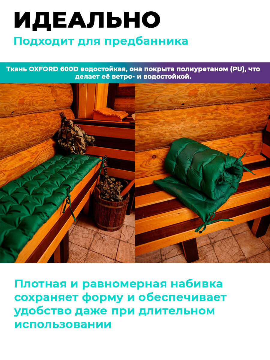 Матрас-Подушка 40x120 см Oxford 600D для Сада и Квартиры (Синтепух, Завязки) Подарите уют подоконнику и комфорт саду! Универсальная подушка-матрас 40x120 см (Oxford 600D, синтепух) с надежными завязками. Ищете подушку для подоконника в квартире для создания уютного уголка? Нужен водостойкий матрас на садовую скамейку или чехол для качелей 40х120? Наша подушка-матрас – идеальное решение! Идеально для Вашего комфорта: - В квартире: Создайте мягкий подоконник для чтения, чаепитий или любования видом! Идеально для оконных зон отдыха, утепления холодных поверхностей. - на даче/В саду: Подушка для кресла кентукки, матрас на садовую скамейку, чехол для качелей 40х120, на шезлонг или лежак. Водостойкая подушка для дачи – не боится дождя! - на балконе/террасе: Комфортное сиденье для отдыха на свежем воздухе. - В походах/на пикниках: Мягкая подстилка для отдыха на природе. Ключевые преимущества: - водостойкий Oxford 600D: Настоящая водостойкая подушка для дачи! Не промокает под дождем, легко очищается влажной тканью. Практично и гигиенично. - 6 надежных завязок: Крепко фиксируется на кресле кентукки, качелях, скамейке или подоконнике – не съедет и не слетит. - супер-мягкий синтепух: Обеспечивает комфортную поддержку спины и тела для полноценного релакса в квартире и на природе. - универсальный размер 40x120 см: Подходит для большинства садовых кресел (включая кентукки), скамеек, качелей, подоконников, банкеток. - простой уход: Достаточно протереть влажной губкой. Не требует стирки! - российское качество (Иваново): Собственное производство, контроль качества, доступная цена. Важная информация: - В комплекте: 1 матрас-подушка 40х120 см. - Для подоконника в квартире – идеальный мягкий аксессуар для уюта. - Для кресла "кентукки" обычно достаточно 1 шт, для качелей может потребоваться 2 шт. чехла для качелей 40х120. - Цвет может незначительно отличаться от изображения на фото. Почему выбирают нас? Прямые поставки с производства (Иваново) – лучшая цена! Гарантия качества материалов и пошива. Универсальность: одна подушка – сотни вариантов использования! Быстрая доставка по РФ. Создайте свой островок комфорта сегодня! Мягкий подоконник для уютных вечеров или надежная подушка для садового кресла – все это наша универсальная подушка-матрас! Закажите сейчас!