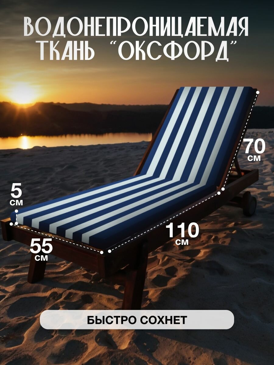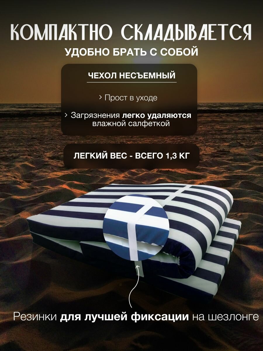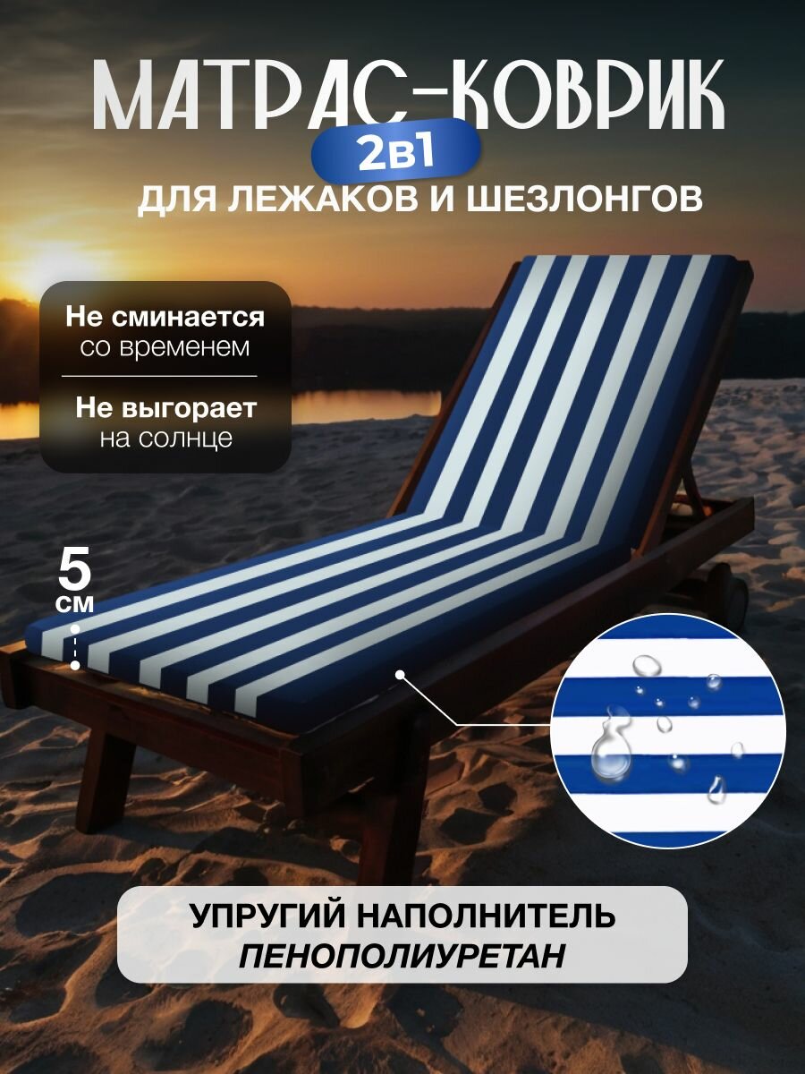Матрас-коврик для лежака и шезлонга 2в1. Изготовлен из водонепроницаемой ткани OXFORD. Если вы ищете удобный вариант для отдыха на пляже, пикнике или на природе, то данный товар - это то, что Вам нужно. Вы можете использовать его, как матрас для шезлонга или коврик подстилка для гальки для пляжа, лежак для пляжа. Также он незаменим в туристических поездках, отлично подойдет для кемпинга. Если вы предпочитаете активный отдых, то наш туристический матрас-коврик - это то, что вам нужно. Он легкий и компактный, что позволит Вам легко брать его с собой в поездки. Подойдёт как для бассейна и пляжа, так и просто для приятных вечеров в кругу семьи на природе. Прост в уходе- достаточно протереть влажной губкой или салфеткой. Ткань водонепроницаемая, долговечная, не выгорает на солнце. Размер матраса в разложенном виде 180х55х5