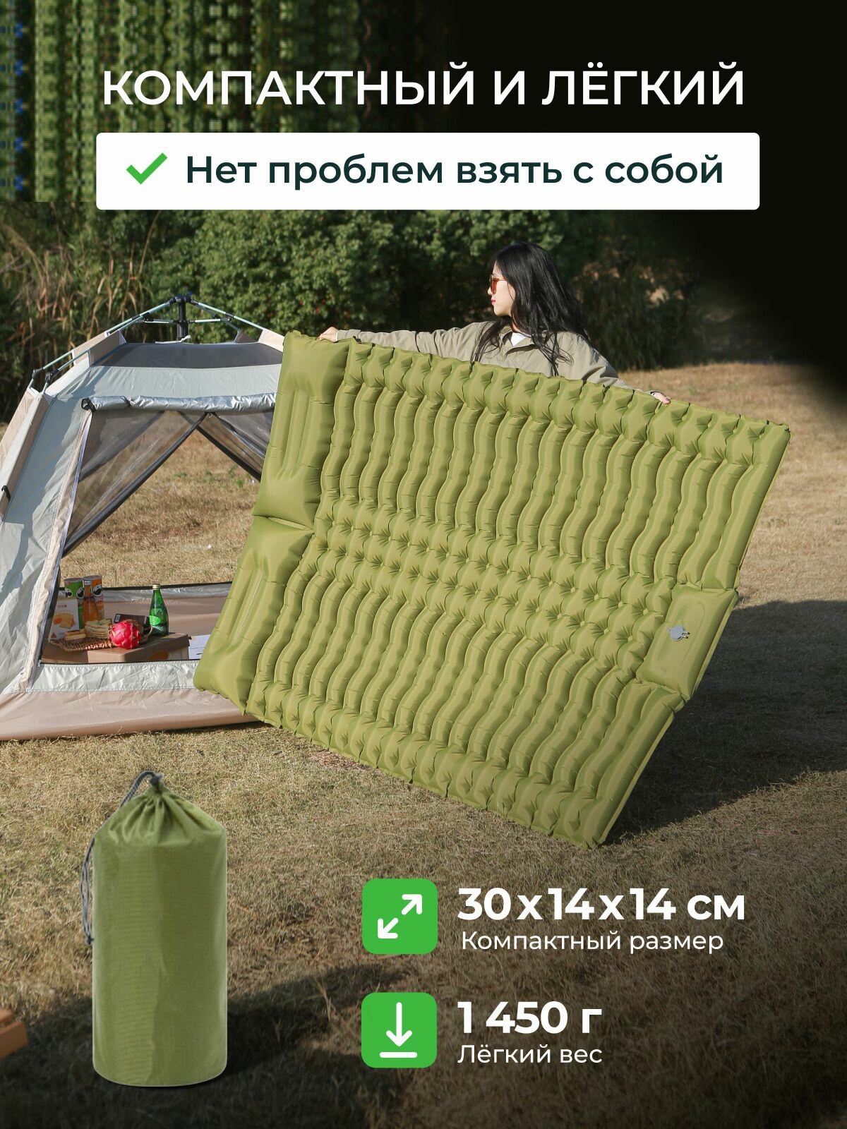 Идеальное решение для отдыха на природе и в поездках! Подарите себе комфортный сон в любых условиях с надувным двуспальным матрасом толщиной 7 см. Благодаря встроенному насосу вы накачаете его всего за 2 минуты, а удобная подушка в комплекте обеспечит дополнительный уют. Основные преимущества: · Двухместный размер (2х спальный) – просторное место для сна двоих взрослых, 130 на 190 см. · Толщина 7 см – оптимальная высота для комфорта и поддержки спины. · Встроенные насос и подушка – все необходимое уже в комплекте. · Высокопрочный нейлон – устойчивость к повреждениям и долговечность. · Легкий и компактный – удобно брать в походы и путешествия. Где пригодится? · Туристические походы – занимает минимум места в рюкзаке. · Кемпинговый отдых – защитит от холода и неровностей земли. · Поездки на природу – быстро разворачивается и надувается. · Гости и дача – отличная альтернатива громоздким матрасам. Почему стоит выбрать именно этот матрас? · Туристический и кемпинговый – подходит для любых условий. · Надувная сегментная конструкция – регулируемая жесткость под ваш вкус. · Приятный материал – приятная для кожи поверхность для сна. · Простота использования – быстро надувается и сдувается. Позаботьтесь о комфорте заранее – возьмите с собой надежный надувной матрас!