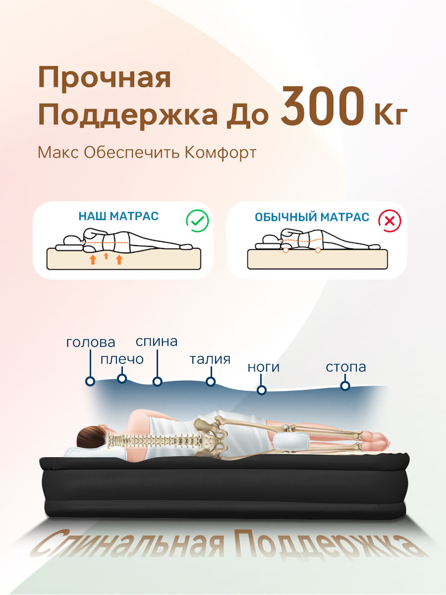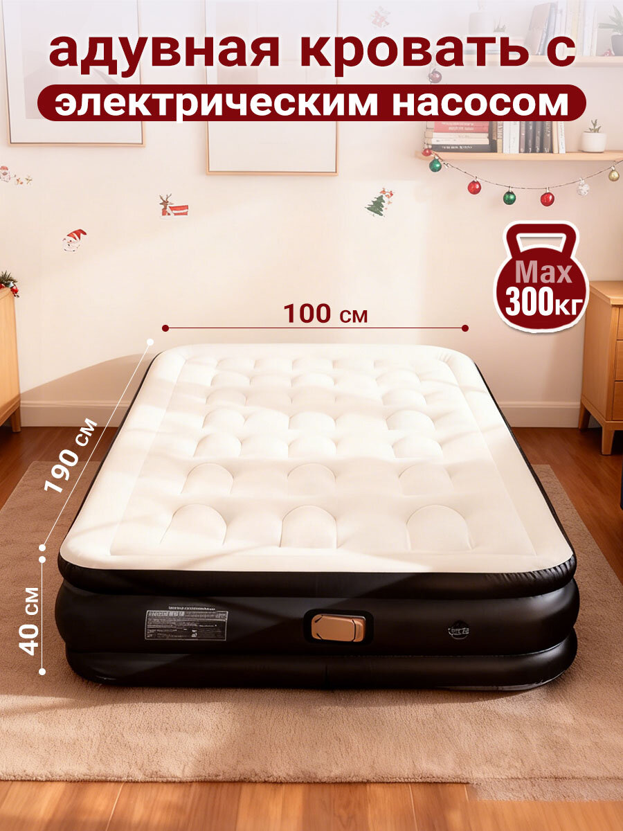 Наша надувная кровать подходит для: 1. Семейный аварийный / запасной: небольшой размер, прост в хранении, подходит для запасного или временного использования в комнатах для гостей. 2. Кемпинг на открытом воздухе: портативный, быстро надувающийся, для удовлетворения потребностей во сне во время кратковременного кемпинга или туризма. 3. Путешествие/переезд: В качестве временного решения проблемы сна решите проблему временного размещения. Надувная кровать Wanderwells 1. Кровать изготовлена из материала ПВХ высокой плотности, который обладает хорошей эластичностью и прочностью, выдерживает большие ударные нагрузки и не так легко лопается. 2. Флокированное покрытие не даёт соскальзывать белью, и в тоже время легко чистится. Легко очищается после использования - достаточно протереть влажной тряпкой. 3. Надувной матрас оснащен встроенным электрическим насосом, который позволяет накачивать и выкачивать воздух, делая использование более удобным и экономя времени. Просто нажмите кнопку включения/выключения, и матрас автоматически накачается или спустится за 3-5 минут, обеспечивая спокойный сон в течение ночи. При отсутствии электричества, кровать можно накачать механическим насосом. 4. Удобная поверхность для сна: Мягкий ворсистый верх обеспечивает повышенный комфорт и устойчивость. 5. Портативная конструкция: Компактное хранение и удобство переноски. 6. В районах с низкой температурой воздуха после получения продукта его необходимо оставить на 8 часов перед распаковкой, помните, что не следует сразу использовать, чтобы предотвратить разрыв материала из-за низкой температуры. Характеристики: Размер: 100х190х40см. Размер упаковки: 19.5x31x36см. Вес упаковки: 5 кг. Мощность насоса: 90 вт. Производительность насоса: 450л/мин. Время накачивания: 3мин. Максимальная нагрузка: 300кг. Комплектация Кровать, насос, инструкция, ремкомплект