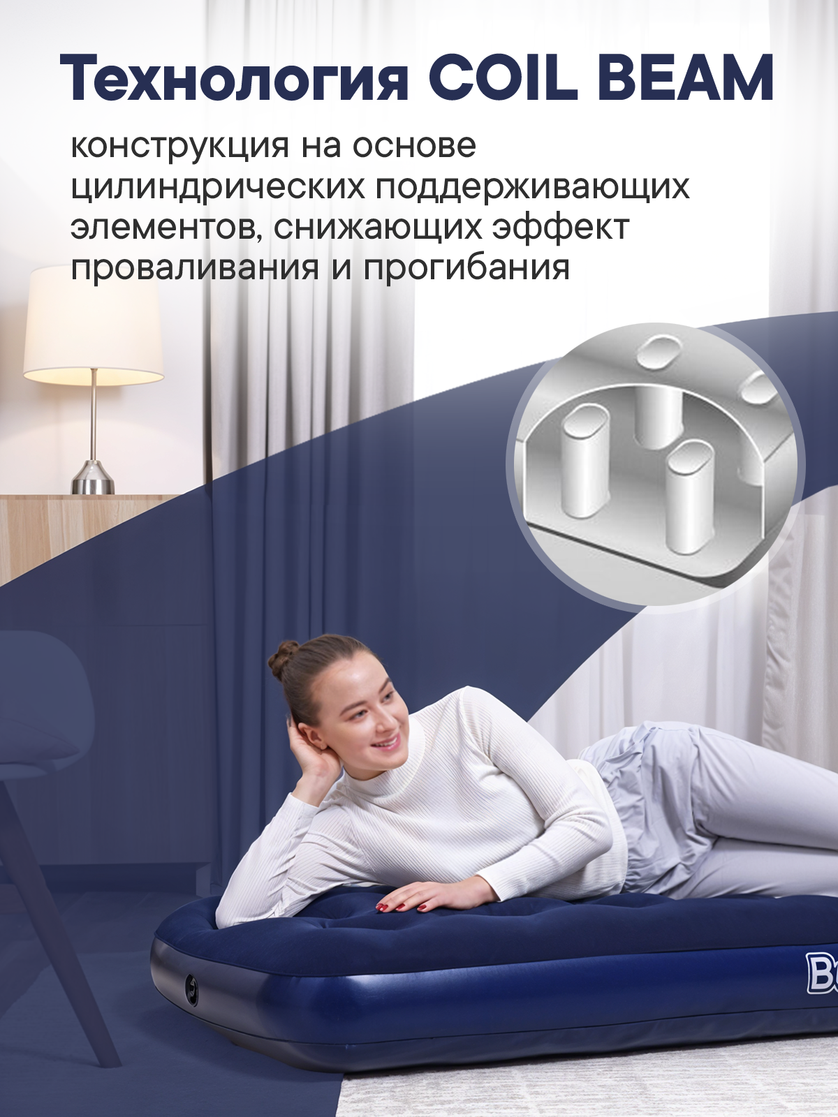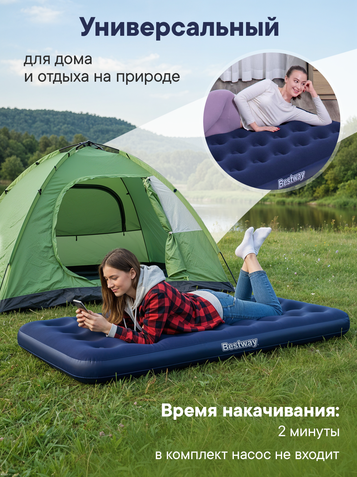 Матрас надувной односпальный (надувная кровать односпальная) Bestway 188×99×22 см — это практичное решение для дома, гостей, дачи, кемпинга или отдыха на природе.