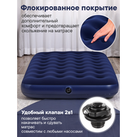 Совместим с любыми насосами: ручными, ножными, электрическими. Польза: матрас надувается примерно за 2 минуты и так же быстро сдувается — без лишних усилий.