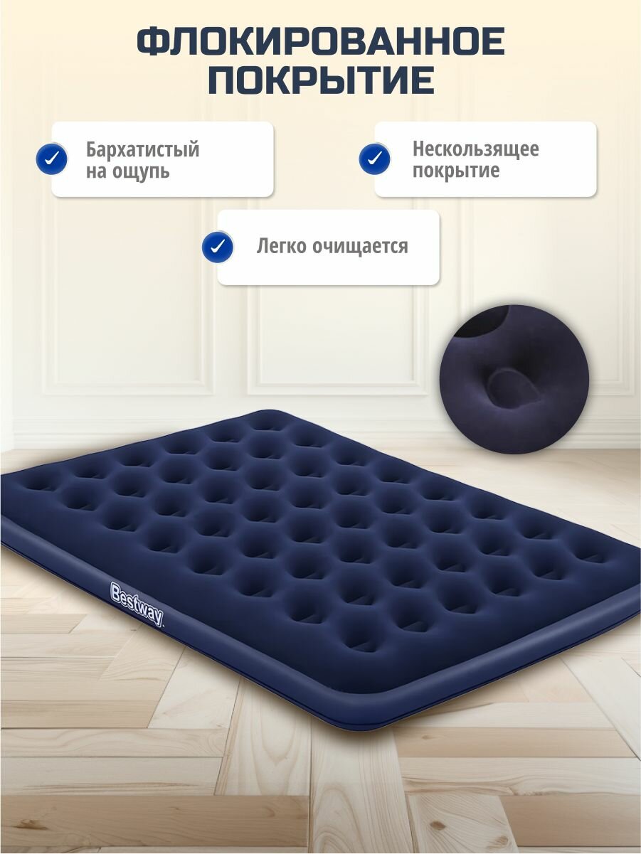 Купить Bestway Матрас надувной двуспальный 203х152х22 см, без насоса, 300 кг флокированный, ортопедический с доставкой по всей России.