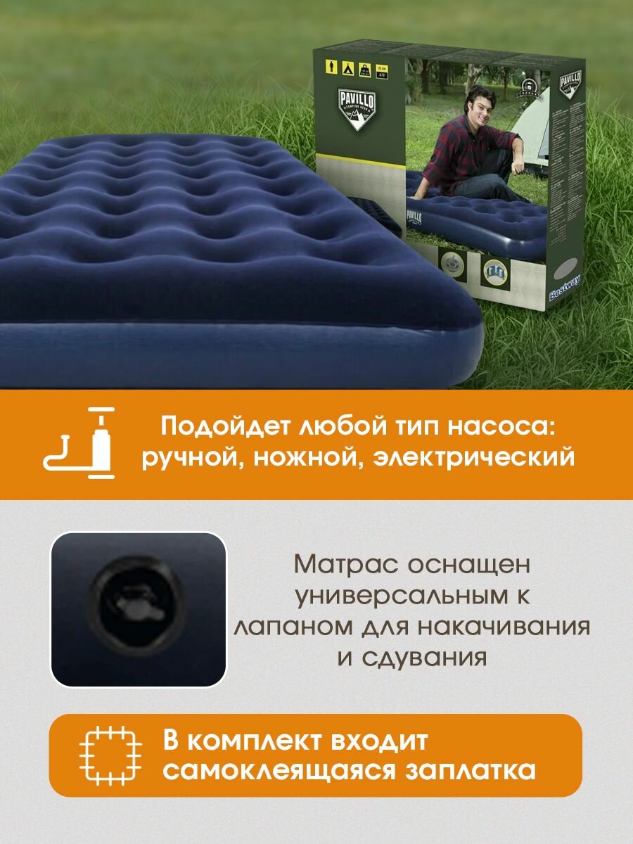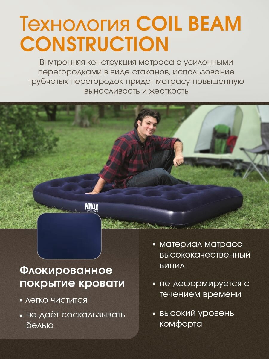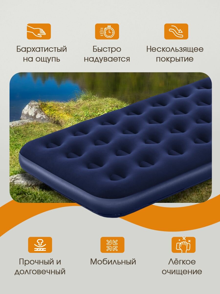 Односпальный надувной матрас Bestway 67001. Инновационная внутренняя система поддержки и прекрасная волновая структура с продольными цилиндрами делают этот матрас современным и эффективным средством для улучшения качества сна. Поверхность этой поистине уникальной модели матраса всегда будет ровной - любые колебания и проваливания исключены. Поверхность матраса – водонепроницаемый прочный винил, сверху и по бокам флокированный слой, благодаря чему постельное белье не будет соскальзывать. А фирменная сумочка для переноски и хранения матраса сделает ваше путешествие или отдых еще более комфортным.