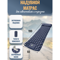 Матрас надувной это универсальный спутник для туриста, охотника , автолюбителя. Так же он подойдет для машины или пикника. Матрас для палатки имеет длину 190см, ширину 60см и толщину 5см, поэтому этот матрас из категории спальные мешки, коврики и матрасы будет удобным для высоких и крупных людей. Коврик односпальный выдерживает до 200кг, он подойдет для людей с разным сложением тела. Матрас туристический имеет ячеистую структуру и выполнен из специального материала, благодаря которому вес равномерно распределяется по поверхности и сохраняется тепло. В холодное время года лучше сверху поместить пенку для сохранения тепла. Коврик туристический имеет встроенный насос: его не нужно надувать вручную или электронасосом, заполнение воздухом происходит менее чем за минуту за счёт нажатия на него рукой или ногой. Он также легко сдувается, достаточно только открыть клапан в области подушки. Надувной коврик имеет толщину всего 5см. Благодаря такой толщине он эффективнее, чем у самонадувающегося матраса. Вы не почувствуете неровности земли. Весит коврик походный 650 гр, коврик тактический можно брать в походы, на охоту, на рыбалку, на море. Матрас самонадувной имеет встроенную подушку. Матрас кемпинговый в сложенном виде имеет малый объем.