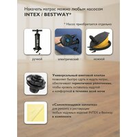 Надувной матрас - 1 шт. Клапан 2-in-1 Два в одном (установлен в матрасе) - 1 шт. Не комплектуется воздушным насосом (приобретается отдельно). Внимание: автомобильный насос не подходит! Время надува: зависит от насоса.