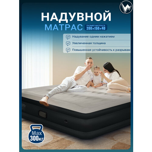 Матрас Надувной Двуспальный С Насосом Для Сна, Надувная Кровать Полутороспальный 200x150x40, Черное