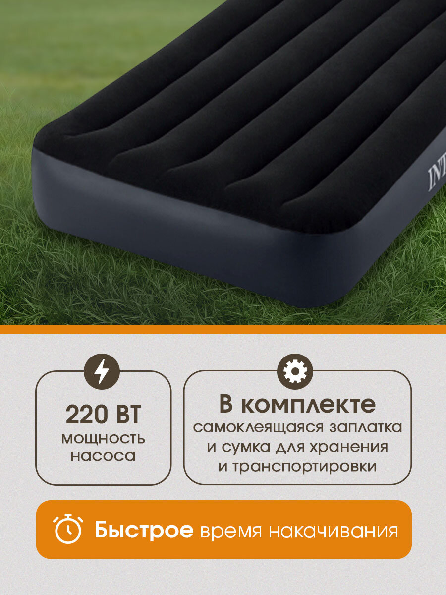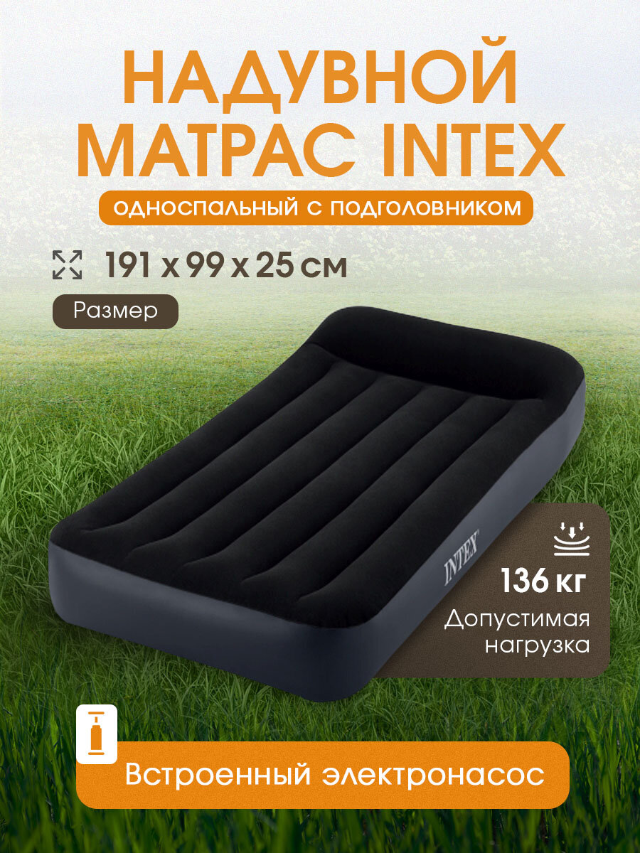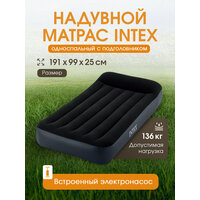 Купить Intex Матрас надувной односпальный 191х99х25 см насос встроенный, 136 кг флокированный, ортопедический с доставкой по всей России.