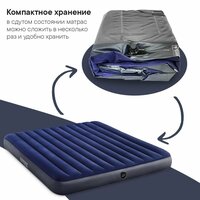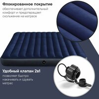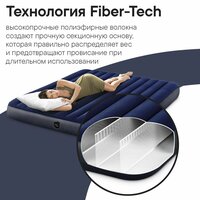 Матрас надувной Intex, относится к продвинутой линейке Classic Downy Airbed. Размер спального места 180х200 см (точный размер 183х203х25 см). Изготовлен с использованием технологии Fiber-Tech, которая обеспечивает прочность и надежность изделия за счет укрепления внутренних перегородок многочисленными полиэфирными волокнами. Надувной матрас двуспальный, обеспечит комфортный сон для двух человек в любой обстановке: от уютной квартиры до туристического похода! Вы можете просто хранить его дома на случай прихода гостей, а можете взять с собой в любое путешествие и быть уверенным в качестве своего отдыха. Матрас двухспальный, но при использовании в кемпинге идеально помещается в 3-4 местную палатку. Скромный вес и габариты в сложенном состоянии позволяют брать его с собой как в автомобильные, так и в пешие походы. Также вы можете использовать матрас для плавания на реках, озерах и любых других пляжах с песчаным грунтом или мелкой галькой. Может быть накачан любым механическим или электрическим насосом (приобретается отдельно). Флокированное покрытие матраса не даёт соскальзывать белью, но в то же время легко очищается влажной тряпочкой без использования чистящих средств и быстро сохнет на солнце. Благородный синий цвет не маркий и не выгорает на солнце.