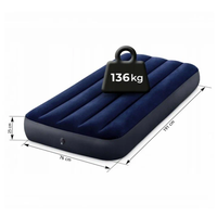 Вид: надувной Размер: 99x191x25см Максимальная нагрузка: 136кг Спальных мест: односпальный Материал: винил Покрытие: флокированный Цвет: синий Насос в комплект не входит Страна производитель: Китай Упаковка: коробка Односпальный матрас подойдет для отдыха и использования дома в качестве дополнительного спального места. Внутренние перегородки сделаны из множества полиэфирных волокон, за счет чего он становится намного прочнее и легче. Благодаря новой технологии практически исключен разрыв внутренних перегородок, что означает надежность и долговечность изделия. Флокированное покрытие матраса не даёт соскальзывать белью и в то же время легко чистится. Клапан 2-в-1. Накачать матрас можно любым механическим или электрическим насосом Intex. Насос не входит в комплектацию и приобретается отдельно. Примечание: Производитель оставляет за собой право вносить изменения в конструкцию, не ухудшающую качество, характеристики и потребительские свойства товара без обязательного извещения. Обращаем Ваше внимание на то, что данные характеристики носят исключительно информационный характер и ни при каких условиях не являются публичной офертой.