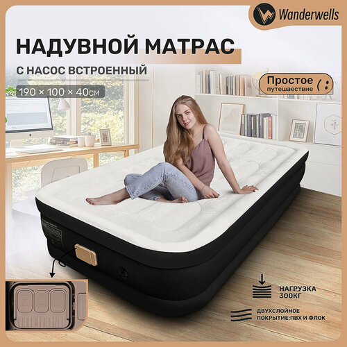 Матрас Надувной Односпальный С Насосом Электрическим, Надувная Кровать Для Сна Высокий 190х100х40, Черное