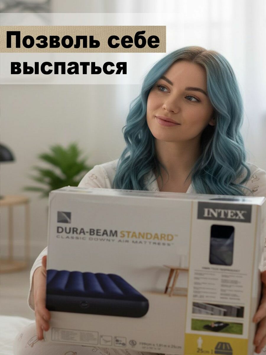 Матрас надувной односпальный для сна с насосом серии Classic Downy Airbed Dura-Beam 76х191х25см INTEX изготовлен по технологии Fiber-Tech. - Легкий в использовании — комплект включает ручной насос для быстрого надувания и компактную упаковку для хранения. - Удобство и комфорт — флокированное покрытие обеспечивает мягкую поверхность для спины и тела. - Прочный и долговечный — водонепроницаемый материал и встроенный ремкомплект защитят от повреждений даже при активном использовании. - Подходит всем — рассчитан на максимальную нагрузку до 136 кг, идеален для взрослых и детей. - Универсальность — применяется как дома, так и на природе благодаря компактным размерам и устойчивости к внешним условиям.