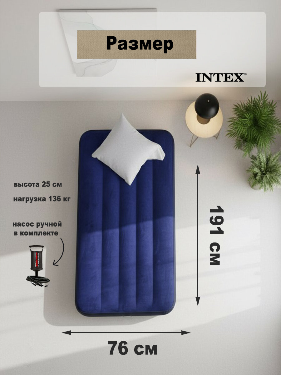 Купить Матрас надувной односпальный с насосом 76х191х25см INTEX для сна с доставкой по всей России. Матрас надувной односпальный с насосом 76х191х25см INTEX для сна: сравнение цен, характеристики, фото, актуальное наличие и цены.