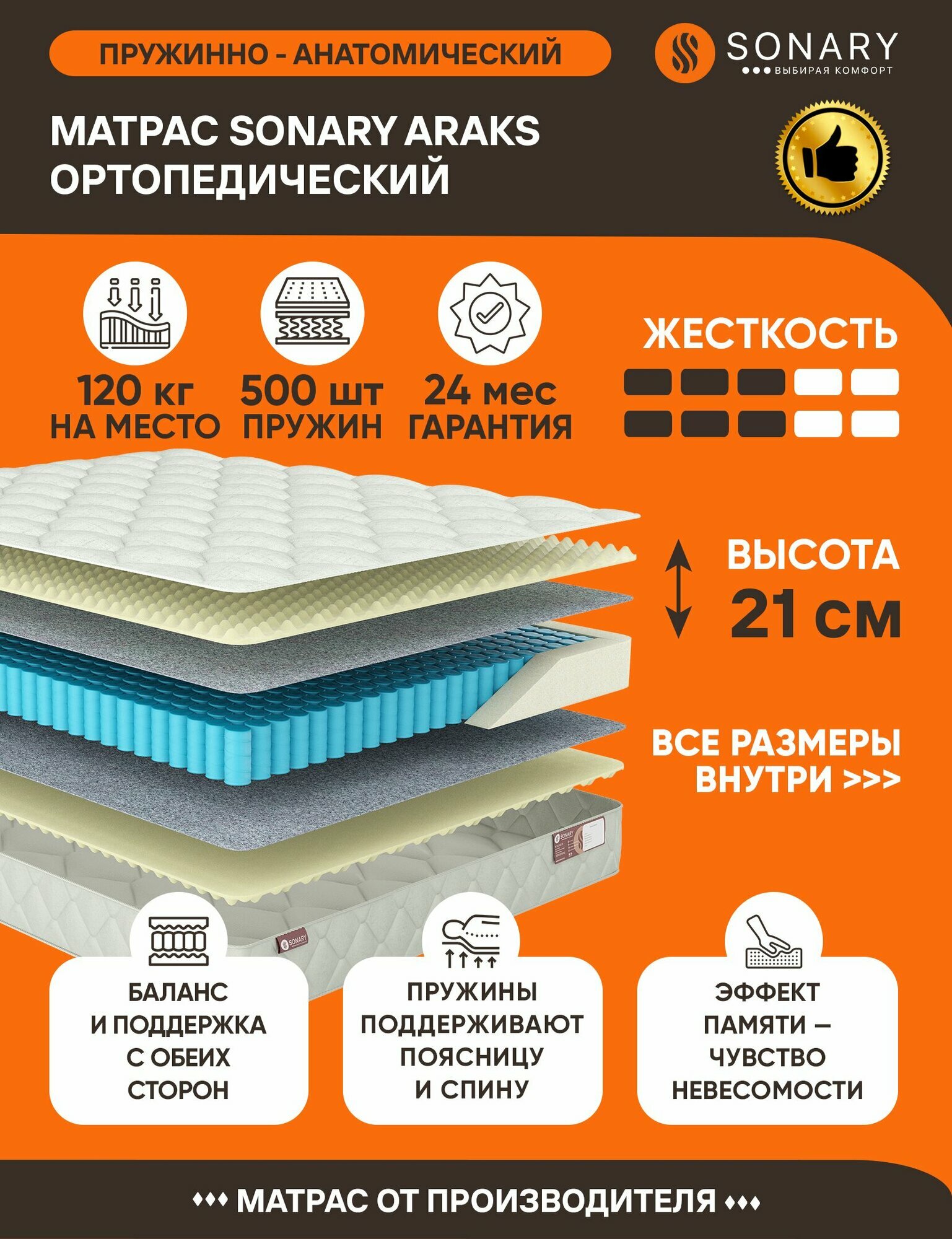 Купить Матрас Sonary Araks 145х210 серии Relax высота 21 см анатомический средней жесткости Независимые пружины с доставкой по всей России. Матрас Sonary Araks 145х210 серии Relax высота 21 см анатомический средней жесткости Независимые пружины: сравнение цен, характеристики, фото, актуальное наличие и цены.
