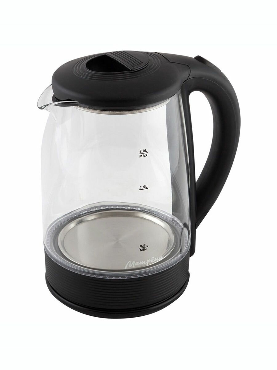 Купить Матрена МА-009 чайник электрический дисковый, 2 л, 1500 Вт, стекло, черный с доставкой по всей России.