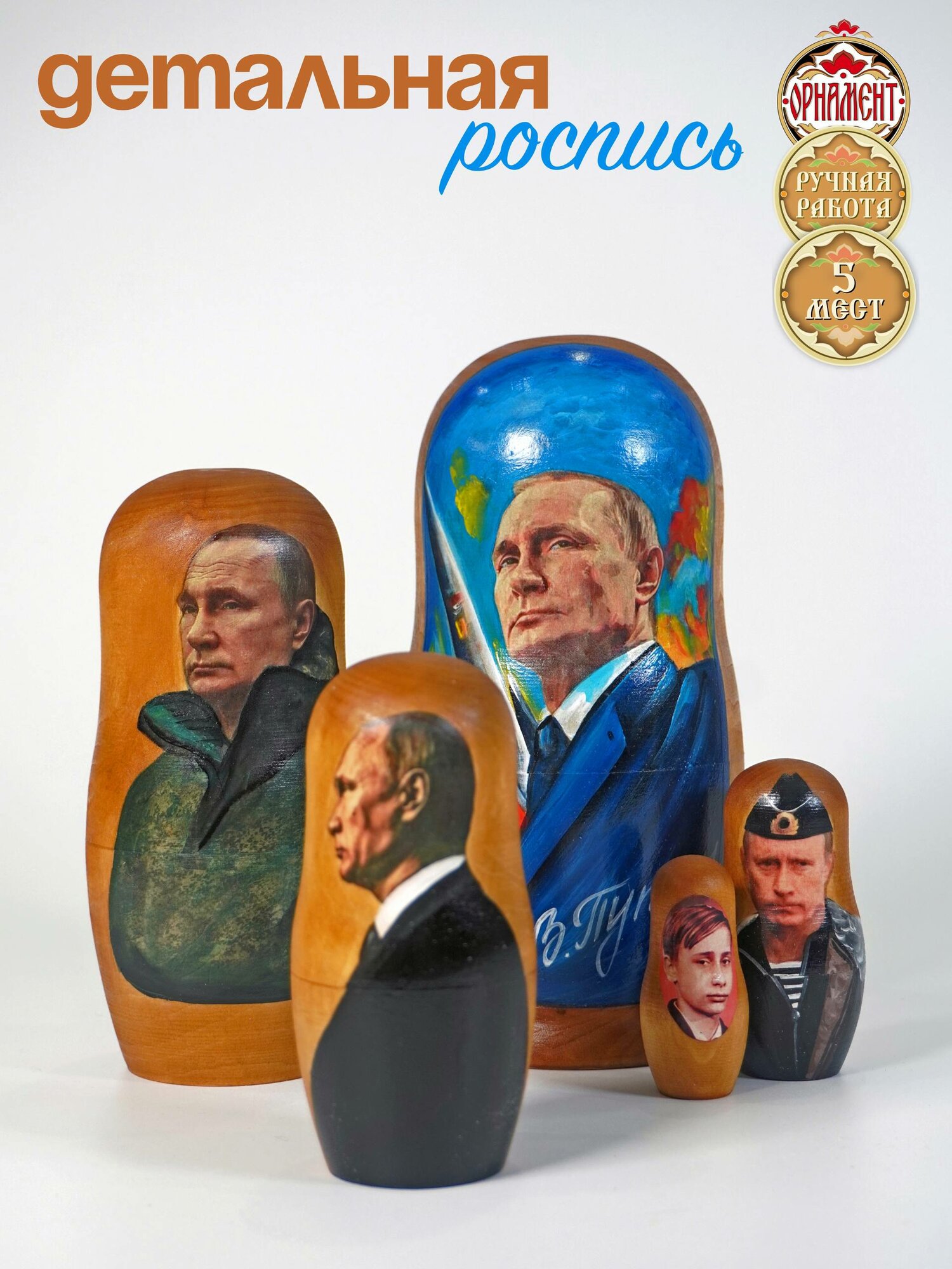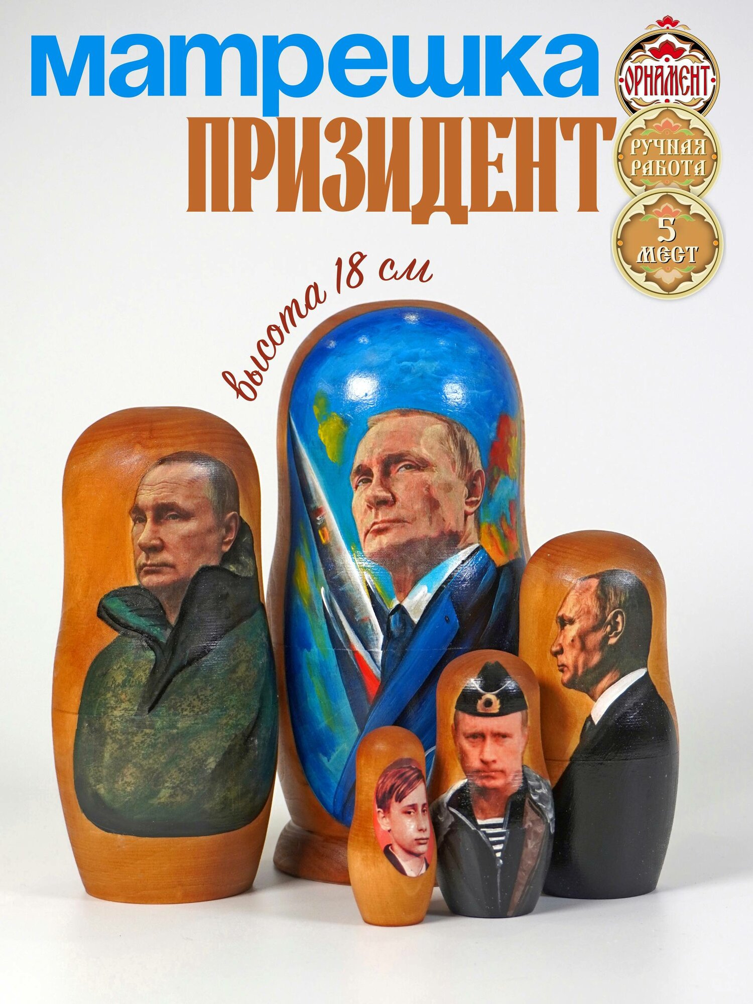 Матрешка деревянная авторская Президент: сравнение цен, характеристики, фото, актуальное наличие и цены.
