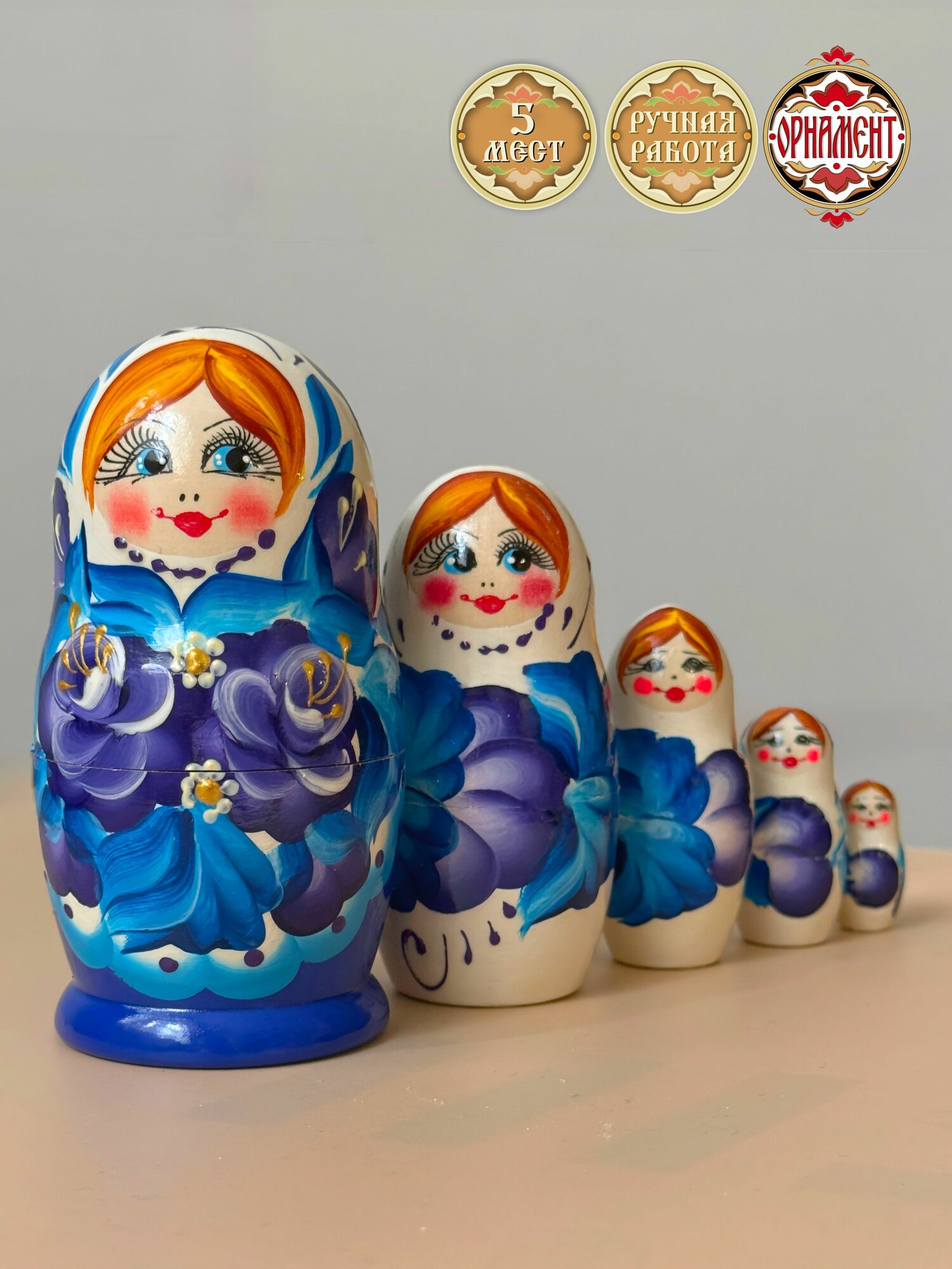 Купить Матрешка деревянная детская 5 мест развивающая игрушка традиционная 10 см Орнамент с доставкой по всей России.