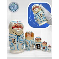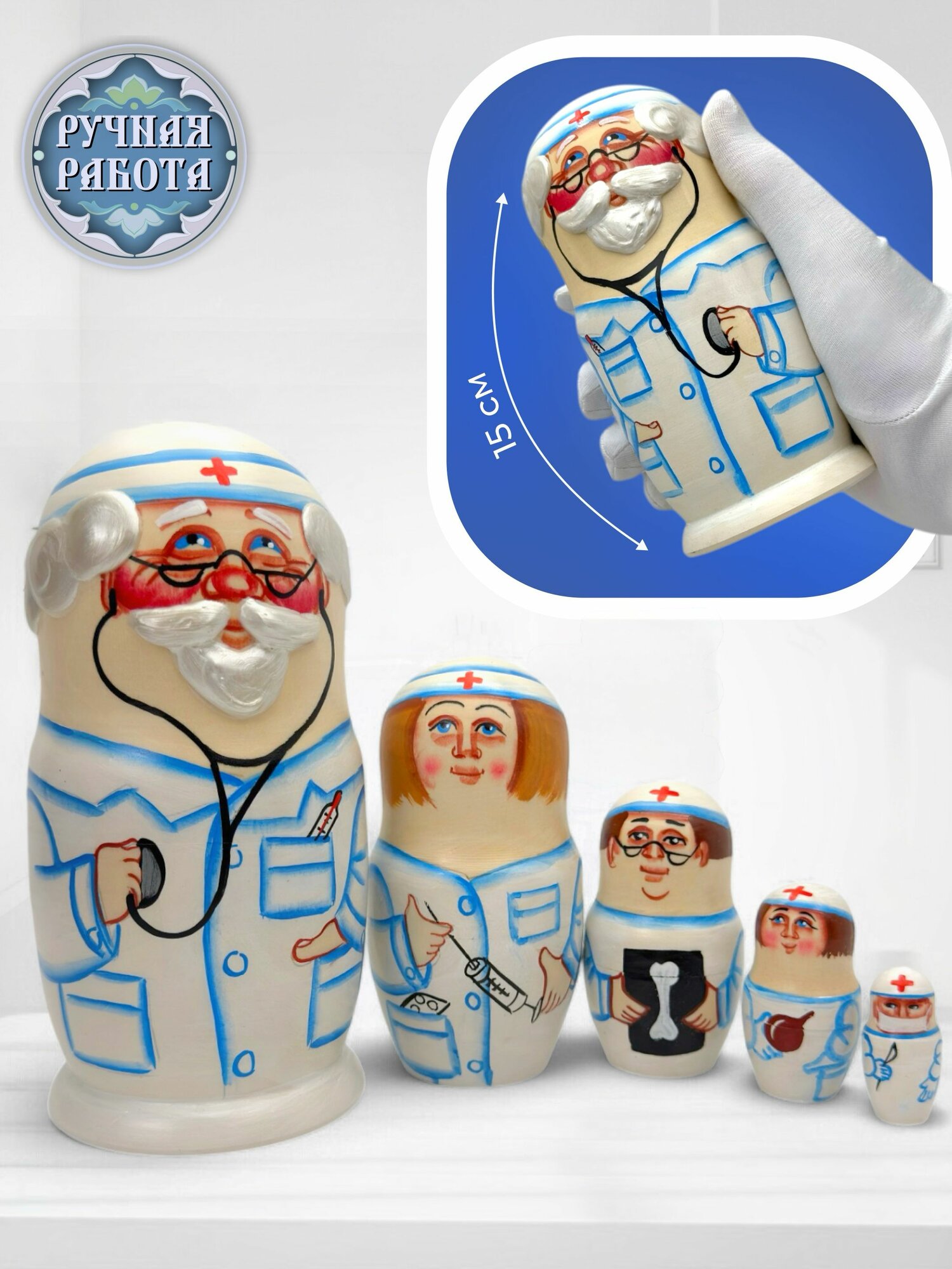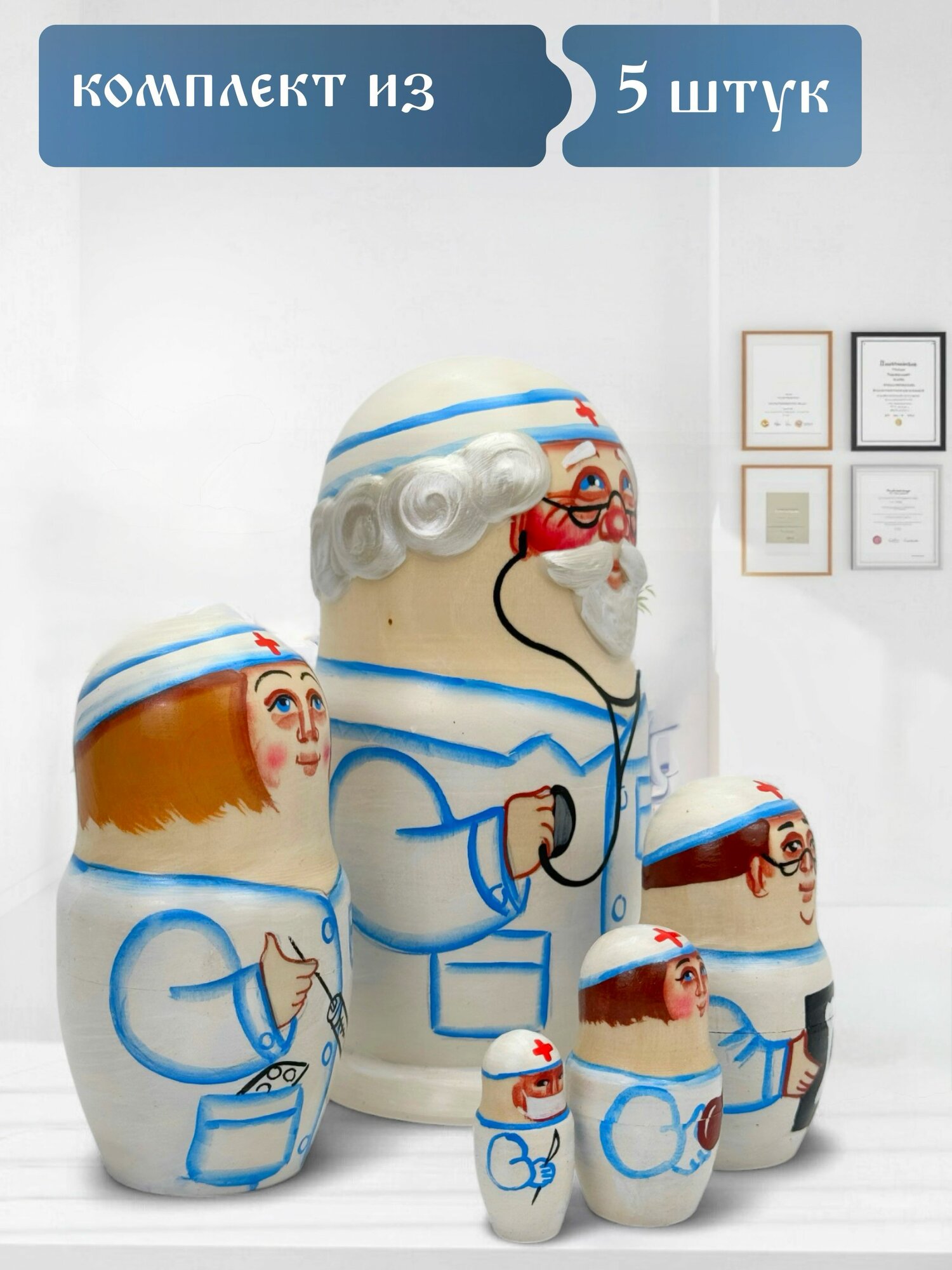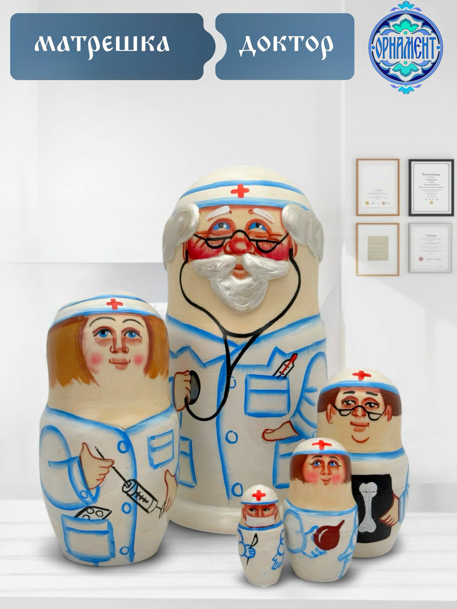 Купить Матрешка деревянная детская Доктор 5 мест развивающая игрушка 15 см Орнамент с доставкой по всей России.